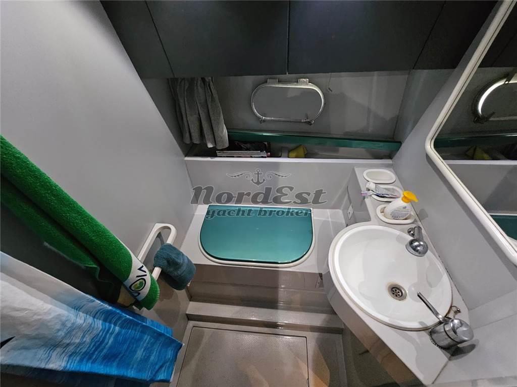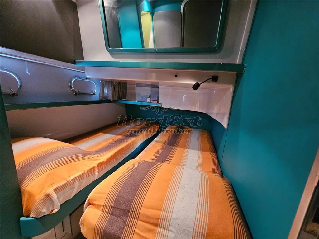 Versione 2 cabine, con cucina al piano inferiore. Elica prua e poppa, riscaldamento Webasto ed aria condizionata. Generatore 3.5Kw. Motori sbarcati 2014 portati ad ore zero, disponibilità descrizione lavori eseguiti, ad oggi dallo sbarco circa 140 ore di moto