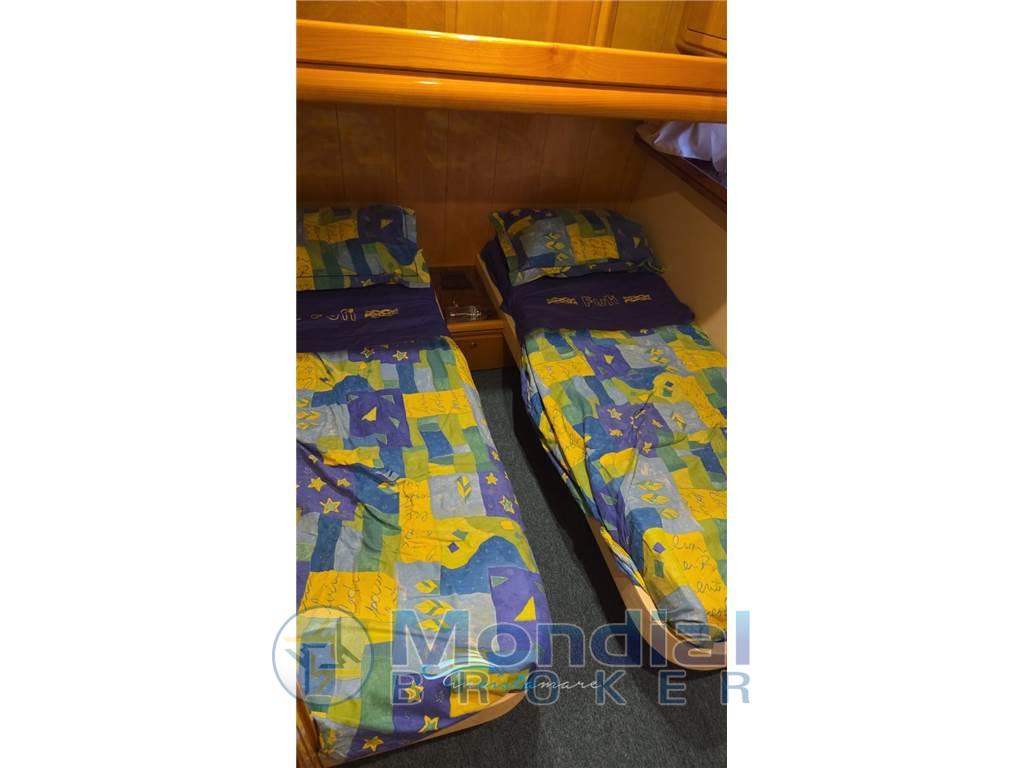 1 Doppia in piano, 1 Cabina equipaggio, 1 Dinette, 2 Toilette doccia no bidet, 1 Matrimoniale a V di prua