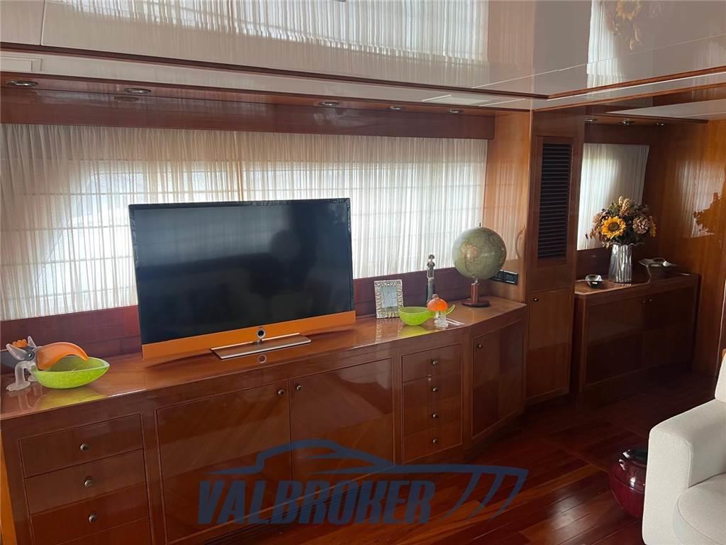Ancora, Angolo barra, Autoclave, Batterie, Bussola, Caricabatterie, Contamiglia, Doccia esterna, Doppia timoneria, Ecoscandaglio, Faro orientabile, Flap idraulici, GPS, Gruette per tender su fly, Impianto antincendio, Passerella, Piattaforma, Pilota automatico, Pompa di sentina automatica, Pozzetto Teak, Radar (Furuno), Salpa Ancore Elettrico, Scaletta da bagno, Tavolo pozzetto