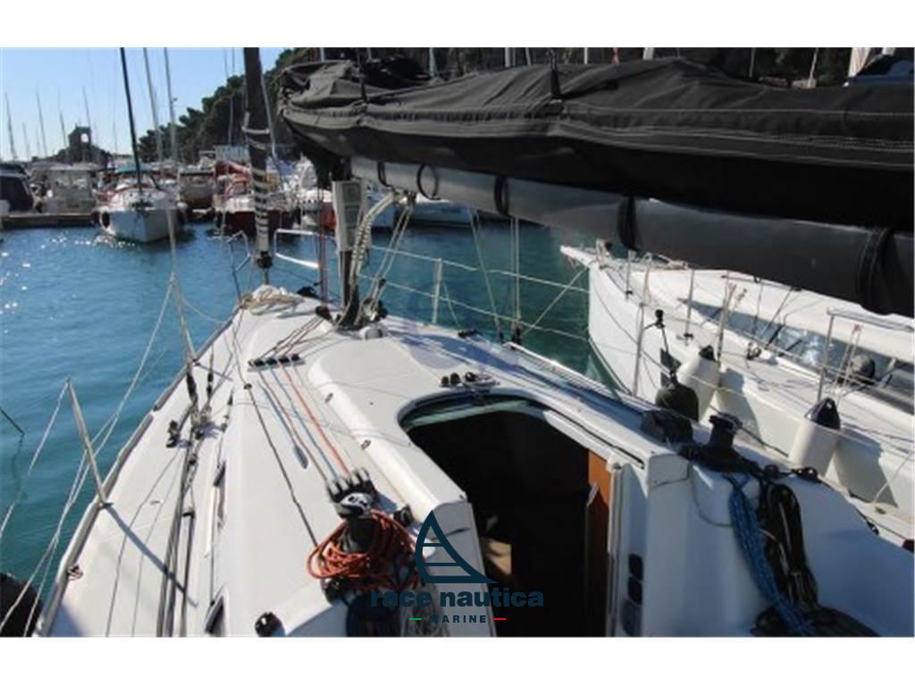 One double master cabin down the portside. One guest cabin with a queen-size bed, without door. Full bathroom. Dinette. Master cabin convertible into a saloon with a double bed. Galley equipped with sink, stovetop, refrigerator, and oven. Chart table. Large cockpit locker. Carbon mast - Footrest on console - Complete 220V electrical circuit - Boiler / heat exchanger - Electric refrigeration unit - 3rd battery 2024 - Rigid boom downhaul - 2 opening portholes (the others on the deckhouse are standard) - Bimini 2022 (black) - Awning cover 2023 (black) - Table - Bathroom with toilet and shower with drain - Carbon gangway - Entrance companionway cover - External cushions - New lazy bag 2022 (black) - White hull - Teak cockpit - Electric/manual bilge pump - 12/220v electrical system - Battery charger - Boiler - Swimming ladder - Cold cockpit shower - Anchor + chain and rope. New 2023 North sails carbon black sails (mainsail and Genoa). 44 genoa sheet winches, 40 rigging winches, carbon spinnaker pole + spy circuit, Dynema halyards. Compass, Raymarine 6001 pilot, Raymarine Ray 54 VHF - 2007 electronics pack. New upholstery - routine hull maintenance and servicing - New sails - Polishing completed - Rigging checked - New halyards - Mast repainted September 2025 and new rod rigging redone September 2025.