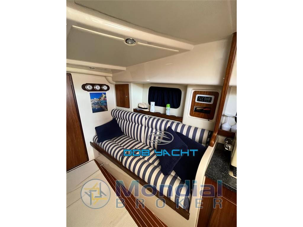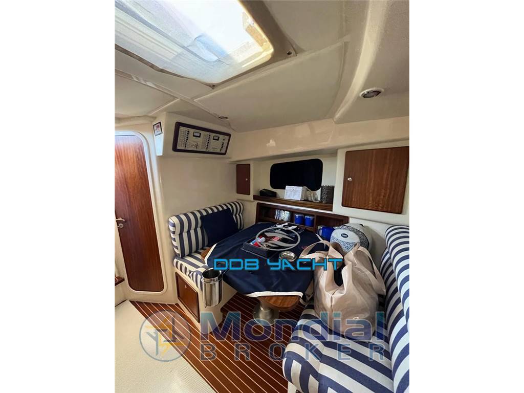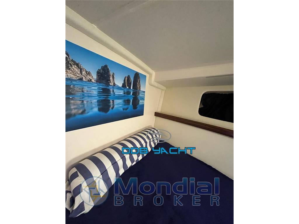 1 CABINA, 1 BAGNO: cabina armatoriale a prua separata, dinette trasformabile a SX, cucina con mobile con piano di appoggio a dritta con lavabo e frigo, locale WC separato; ampio pozzetto con divani corredati di tappezzerie, plancia comando con seduta pilota e co pilota, ampio prendisole di prua, mobile living in pozzetto con lavabo, piano cottura e frigo a cassetto in acciaio ISOTHERM.