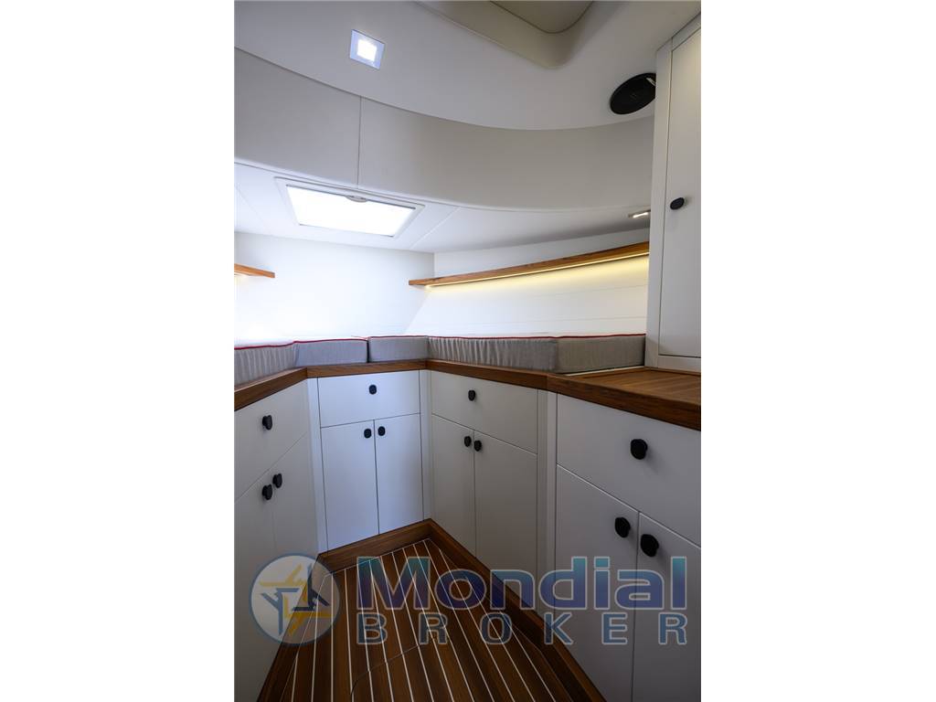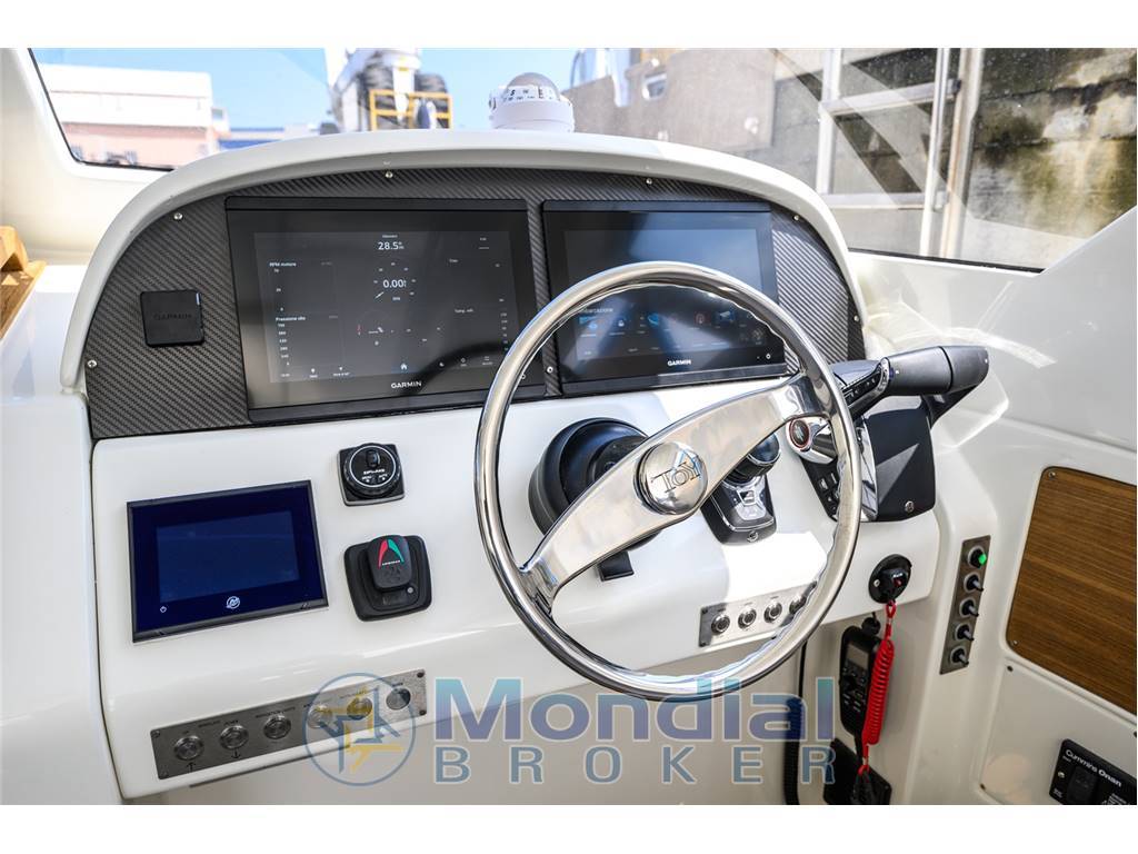 Alimentato da due potenti motori Mercury, ciascuno con una potenza di 300 hp, raggiunge una velocità di crociera impressionante di 28 nodi e una velocità massima di 36, rendendola ideale sia per uscite tranquille che per escursioni avventurose.
