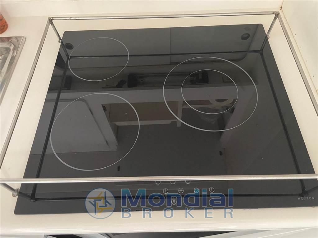 Elica di prua - piano cottura elettrico quattro fuochi - mobile bar nel pozzetto con lavello, piastra elettrica e frigo in acciaio - antenna TV Glomex - TV LCD - gruppo elettrogeno Onan 12 kW - wc Tecma - winch di tonneggio a poppa a scomparsa - generatore.