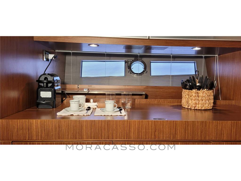 Cucina ed elettrodomestici : cucina, fornello, frigorifero esterno, frigorifero interno, lavastoviglie. Tappezzerie: bimini (2024), copripozzetto, cuscineria completa, cuscineria di poppa, cuscineria di prua.