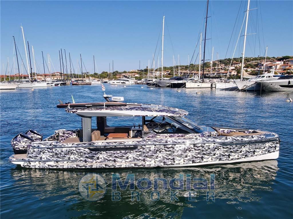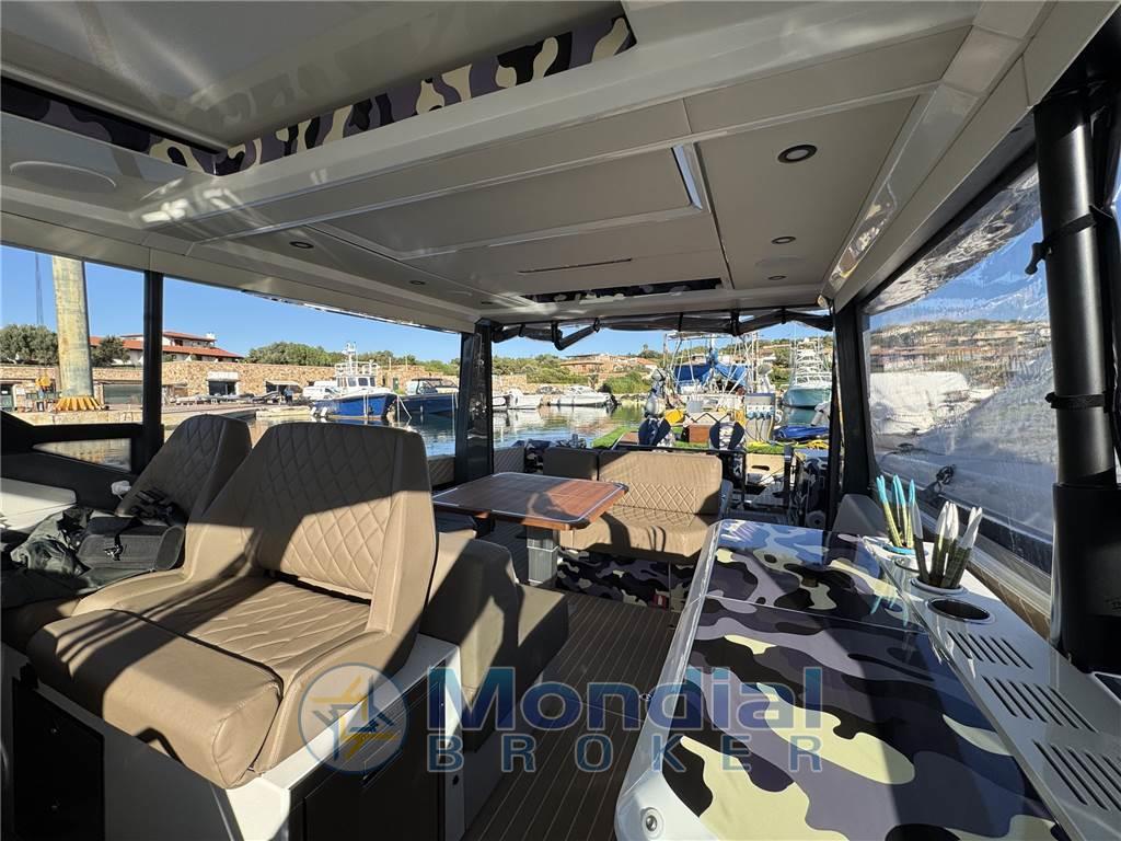 Questo Saxdor 400 GTO praticamente full specs, consegnato al suo primo ed unico armatore nell’estate 2025, incarna al meglio tutte le caratteristiche che hanno reso Saxdor un cantiere d’avanguardia. Le murate abbattibili, lunghe quasi quattro metri, ampliano in modo sorprendente la vivibilità della grande isola living di poppa, facilmente trasformabile in base alle esigenze. Comfort, praticità e stile sono le parole chiave di questa unità, equipaggiata il generator replacement, l'aria condizionata, BBQ esterno, piastra a induzione e doppio frigorifero esterno da 51 litri. I weekend in mare diventano un’esperienza senza compromessi, completata dai tendalini di poppa e di prua e dalla potenza dei due Mercury da 400 hp, capaci di spingere questa regina del mare fino a 45 nodi. Gelcoat in perfette condizioni, protetto dal wrap camouflage.