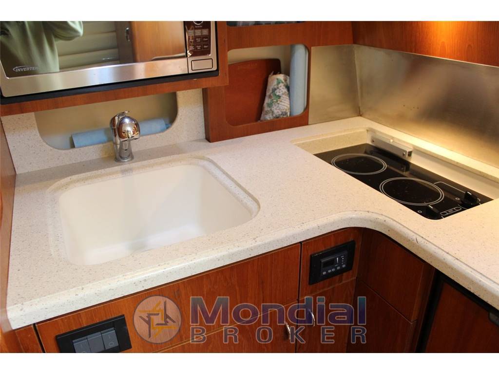 L'imbarcazione è molto confortevole, con ampi spazi sia interni che esterni; la cabina è spaziosa, la dinette ampia e la cucina molto grande per una barca di 12 metri; il bagno con grande box doccia separato.