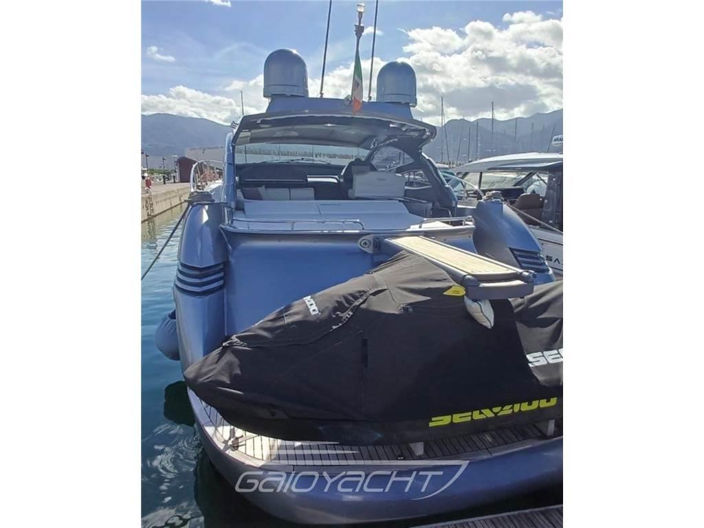 Allarme motore, Allarme sentina, Angolo barra, Antenna radar, Autoclave, Caricabatterie, Colorazione speciale, Comando motori elettronico, Contametri catena, Elica di poppa - stern thruster, Elica di prua - bow thruster, Flap idraulici, GPS, Impianto antincendio, Indicatori Flaps, Lavandino nel Pozzetto, Luci di cortesia, Luci subacquee, Passerella, Pilota automatico, Pompa di sentina automatica, Pozzetto Teak, Presa 220V banchina, Radio VHF, Tavolo pozzetto, Tromba, Winch tonneggio di poppa