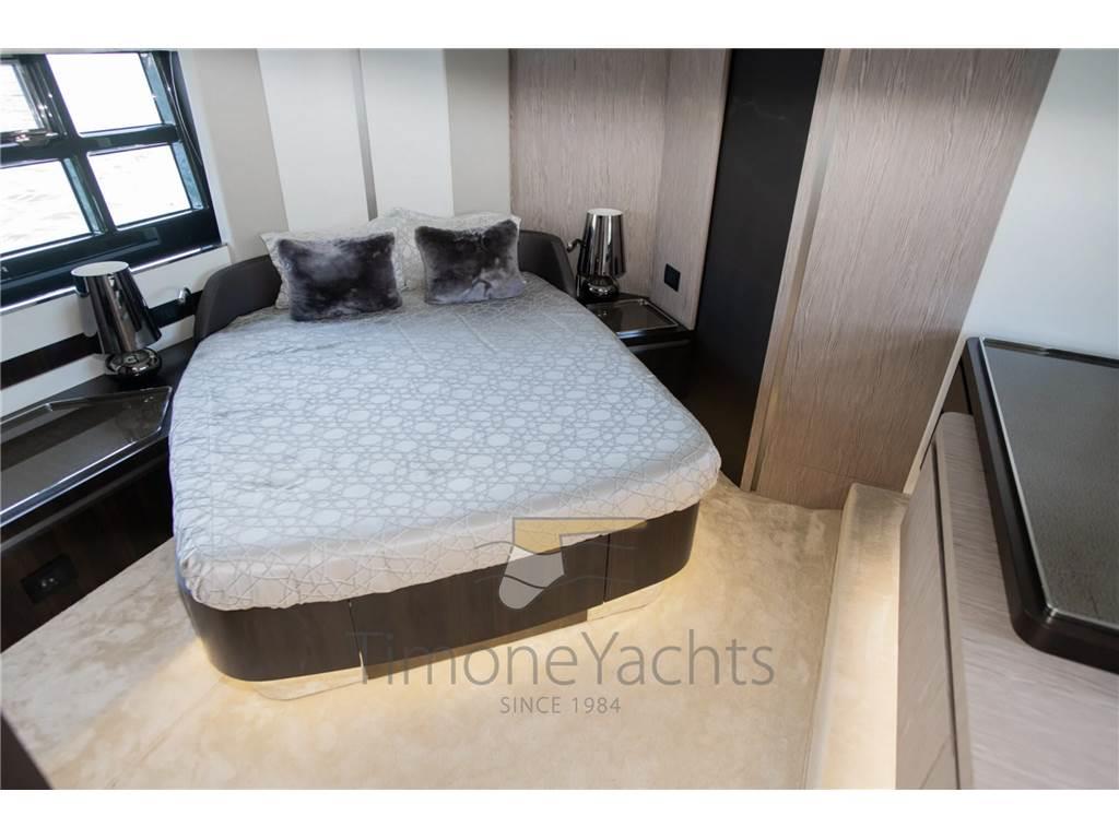 Al ponte inferiore tre cabine ospiti: armatoriale a centro barca con bagno en suite; vip di prua e cabina ospiti murata dx che condividono il secondo bagno.