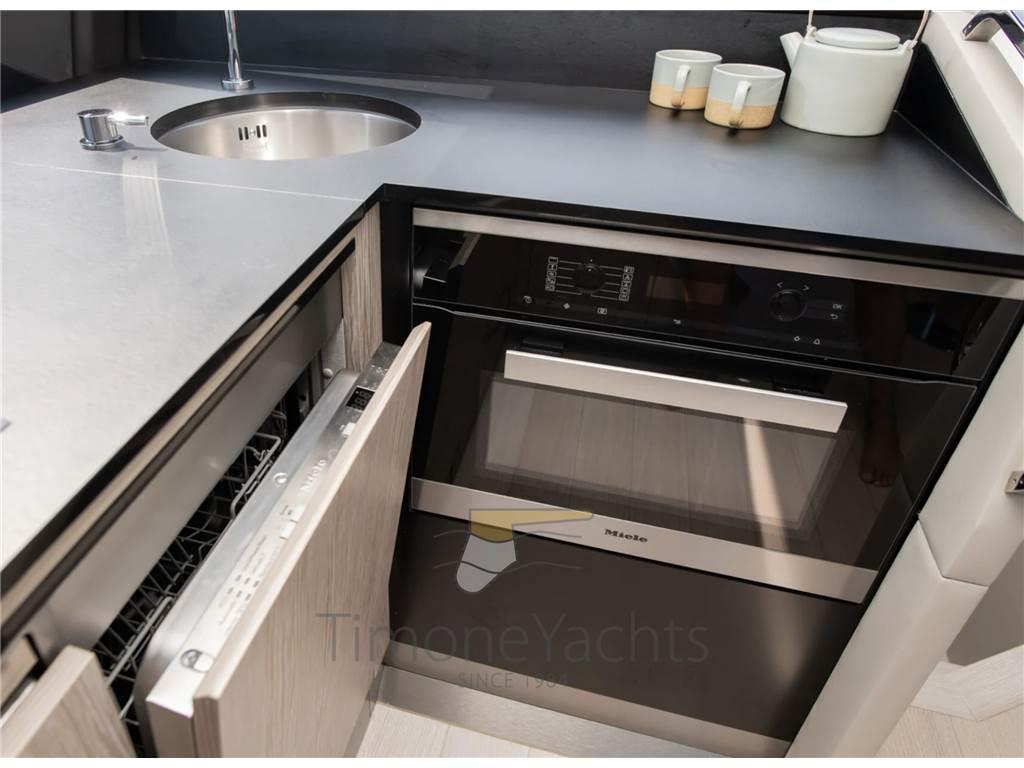 Aria condizionata, BBQ/ Grill, Cassaforte, Clima reversibile, Dimmer per Luci, Impianto acque nere, Pavimento interno in legno, Prese interne 12v, Prese interne 220v, Serbatoio Acque Nere, 2 WC marino elettrico (+ crew).