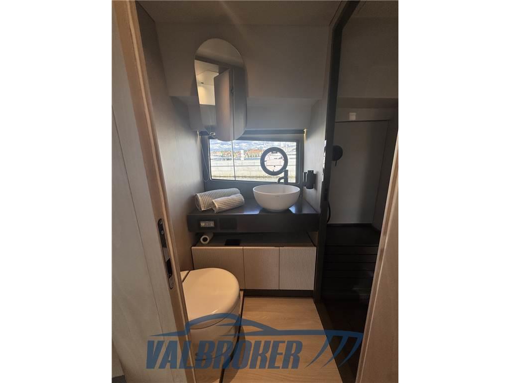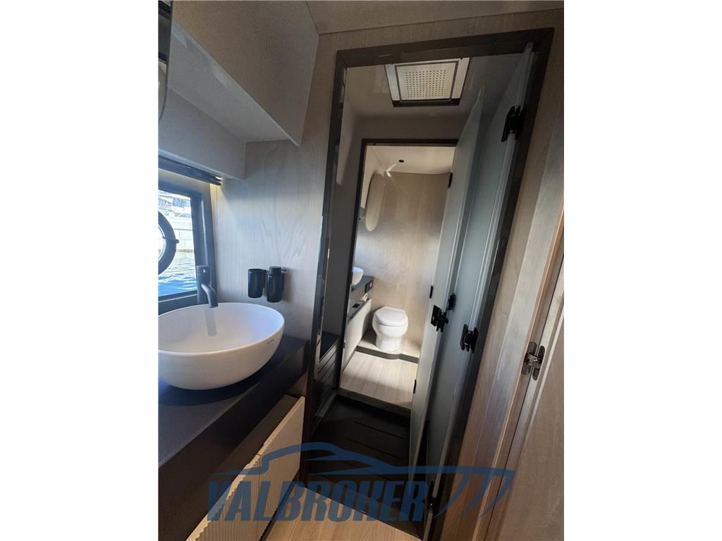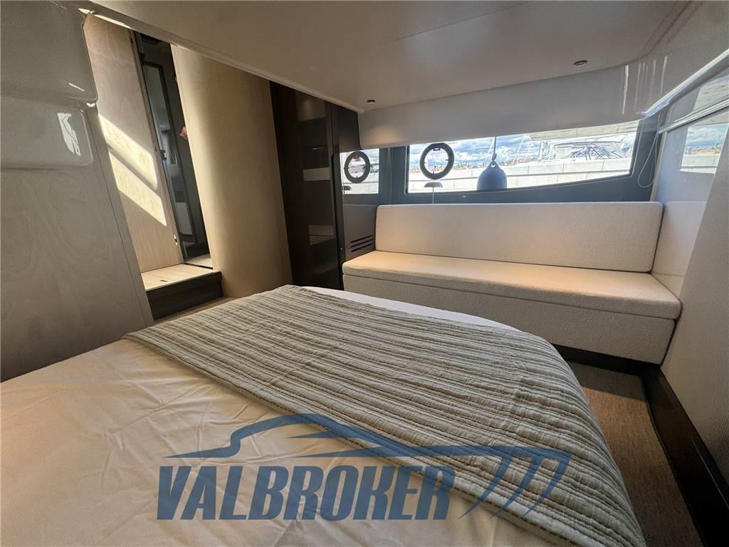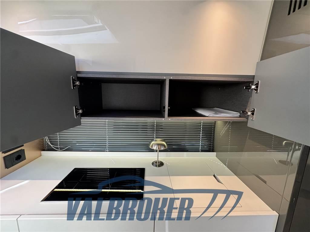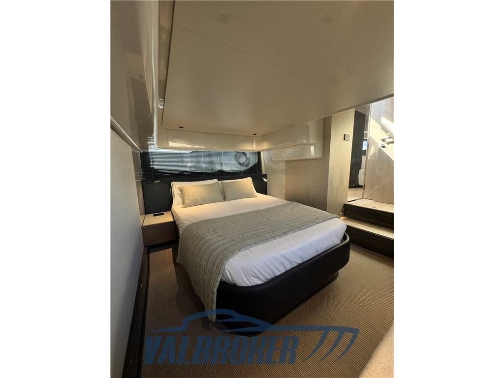 Linee accattivanti abbinate ad ampio parabrezza ed ottima circolazione dell'aria in pozzetto grazie all'Hard Top con apertura lamellare. Offre un'ampia cabina armatoriale a poppa a tutto baglio,un'elegante dinette a prua, trasformabile elettricamente in una vera e propria seconda cabina e due bagni. Gli interni sono moderni con materiali lussuosi e ricercati. Negli esterni l'eleganza del design si fonde perfettamente con lo spirito sportivo di questo nuovo esemplare 100% Made in Italy.