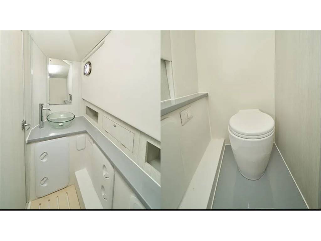 Cabina a prua con grande letto matrimoniale, bagno separato con wc elettrico, lavello e doccia