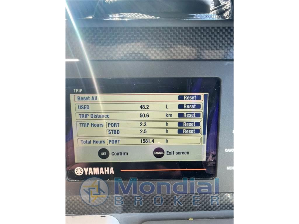 Radar ,Ancora, Autoclave, 2 Batterie, Bussola, Doccia esterna, Ecoscandaglio, Flap idraulici, GPS, Presa 220V banchina, Radio VHF, Scaletta da bagno, T-Top, webasto . Pannelli solari