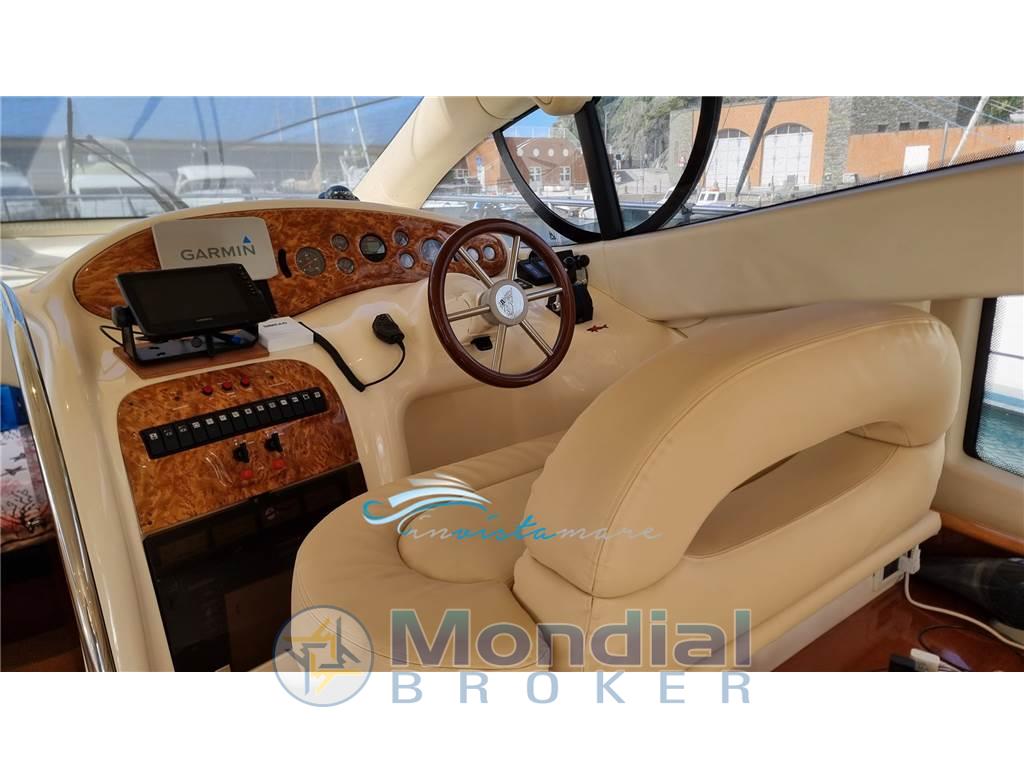 Allarme fumo/gas, Allarme motore, Allarme sentina, Ancora, Angolo barra, Antenna radar, Autoclave, Autogonfiabile, Batterie, Bussola, Caricabatterie, Comando motori elettronico, Contametri catena, Doccia esterna, Doppia timoneria, Ecoscandaglio, Elica di prua - bow thruster, Flap idraulici, GPS, Impianto antincendio, Indicatori Flaps, Luci di cortesia, Passerella, Pilota automatico, Plotter con antenna GPS, Pompa di sentina automatica, Pompa di sentina elettrica, Pompa di sentina manuale, Porta ingresso, Pozzetto Teak, Presa 220V banchina, Radar, Raddrizzatore, Rollbar, Salpa Ancore Elettrico, Scaletta da bagno, Tavolo pozzetto, Tromba