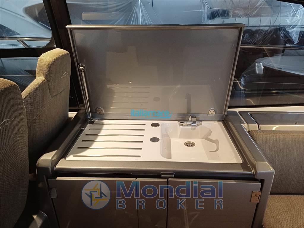 The model stands out for its sporty and decisive line, featuring a characteristic vertical bow that highlights its open concept DNA. On board, the focus is entirely on outdoor spaces and comfort: the cockpit is convivial and convertible, with U-shaped sofas and an extendable table, complemented by a galley cabinet with a grill. The deckhouse features an hardtop with an electrically operated sunroof, ensuring maximum flexibility to enjoy the sun or take shelter. The Atlantis 51 offers a three-cabin and two-bathroom layout. It strikes a balance between dynamic performance and Italian luxury, ideal for summer cruises and sporty weekends.