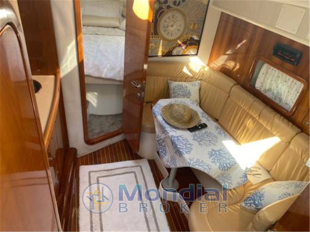 L’Airon Marine 345 del 2003 è un open sportivo di 11 metri fuori tutto costruito dal cantiere Airon Marine, caratterizzato da linee filanti e carena performante, pensato per la crociera veloce e le uscite giornaliere con famiglia e amici. Equipaggiato con due motori diesel Volvo Penta KAD43P/DP-E da 210 Hp ciascuno con trasmissione entrofuoribordo, offre un buon equilibrio tra prestazioni, affidabilità e gestione dei consumi, con dislocamento di circa 5.670 kg e categoria di navigazione B. Gli spazi esterni sono ben organizzati con ampio pozzetto in teak, tavolo, prendisole di prua e di poppa, piattaforma bagno strutturale, passerella idraulica e rollbar, mentre la recente tappezzeria rinnovata nel 2024 e i nuovi tendalini 2025 valorizzano l’estetica e la fruibilità della barca. Gli interni propongono quattro posti letto distribuiti tra cabina matrimoniale a prua, cabina francese e dinette trasformabile, con bagno separato e cucina interna ed esterna completa di frigoriferi e fornello, rendendo l’imbarcazione adatta anche a brevi crociere. Dotata di elica di prua, salpa ancora elettrico, impianto 12/230V, GPS, ecoscandaglio e VHF, rappresenta una soluzione concreta per chi cerca un open italiano di buona qualità costruttiva, prestazioni adeguate e spazi coerenti con la categoria, pronto per la stagione.