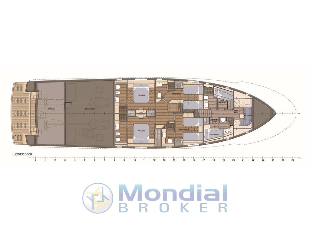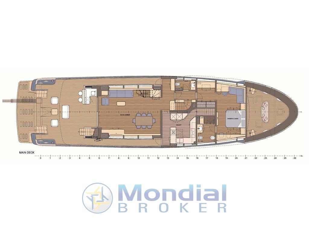 This yacht combines generous spaces and maximum comfort, offering 5 cabins plus a dedicated crew area.