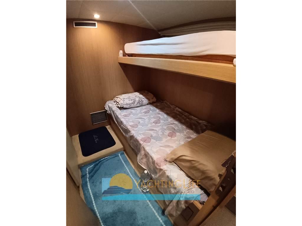 2 Matrimoniale italiana, 1 Matrimoniale francese, 1 Cabina equipaggio, 2 Toilette con doccia, 1 Dinette, 1 Cucina, 1 Salone, 1 Toilette Equipaggio, 1 Toilette doccia no bidet
