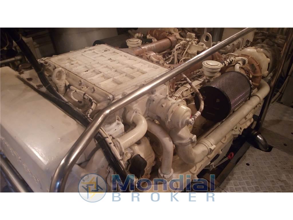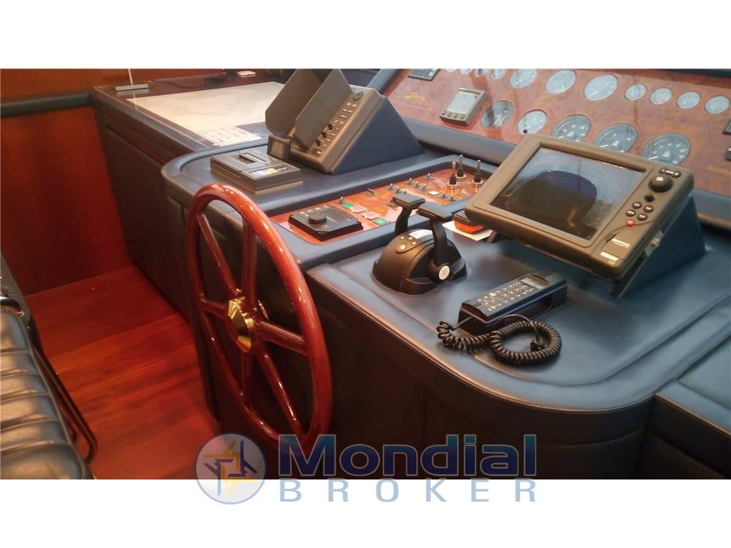 Allarme motore, Allarme sentina, 2 Asse di rispetto, Autogonfiabile, Camminamenti laterali in teak, Doccia esterna, Doppia timoneria, Elica di poppa - stern thruster, Elica di prua - bow thruster, Fari fissi a poppa, Faro orientabile, Flap idraulici, Gruette per tender su fly, Impianto antincendio, Indicatori Flaps, Lavaggio catena, Luci di cortesia, Luci subacquee, Passerella (IDRAULICA), Piattaforma, Pompa di sentina automatica, Pompa di sentina manuale, Pozzetto Teak, Presa 220V banchina, Raddrizzatore, Rollbar, Salpa Ancore Elettrico, Scala reale, Scaletta da bagno, Sistema Depurazione acque nere, Tavolo pozzetto, Tender, Tromba, Winch, Winch Idraulico, Winch tonneggio di poppa, Winch tonneggio di prua.