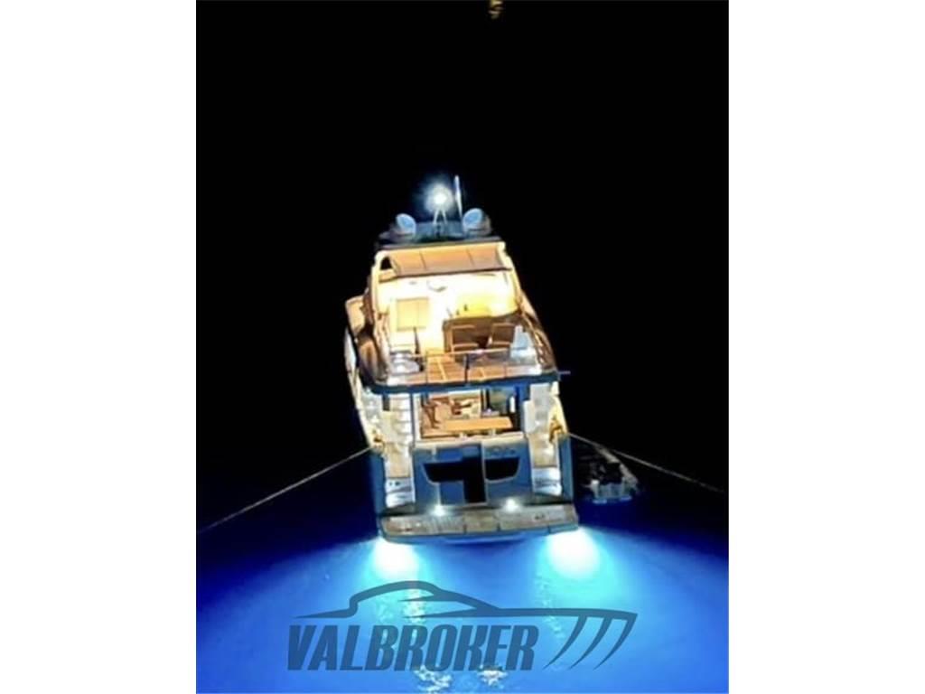Allarme fumo/gas, Angolo barra, Autoclave, Batterie, Bussola, Camminamenti laterali in teak (illuminati), Caricabatterie, Colorazione speciale (Champagne), Contametri catena, Doccia esterna, Ecoscandaglio, Elica di prua - bow thruster, GPS (Garmin), Joystick, Luci di cortesia, Luci subacquee, Passerella (elettro-idraulica), Piattaforma (idraulica in teak massello), Porta laterale, Radio VHF (Raymarine), Sedile Copilota, Tavolo pozzetto (extra lungo), Tender (Williams Turbojet 325 con copertura), T-Top (vetroresina)