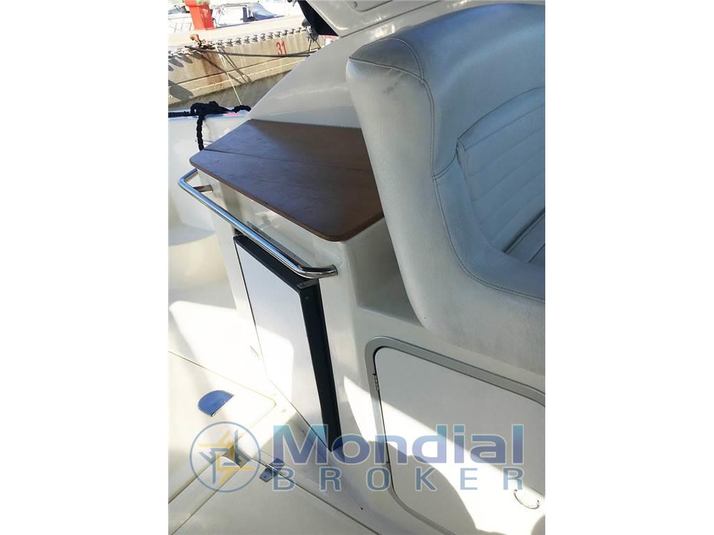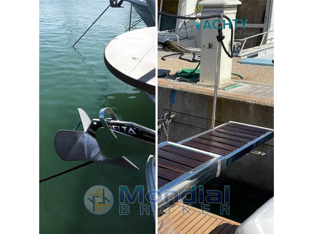 Angolo barra, Bussola, Caricabatterie, Doccia esterna, Ecoscandaglio, Elica di prua - bow thruster, Flap idraulici, Passerella, Plotter con antenna GPS, Pompa di sentina automatica, Pompa di sentina manuale, Presa 220V banchina, Radar, Radio VHF, Rollbar, Salpa Ancore Elettrico, Scaletta da bagno, Tavolo pozzetto, Tromba