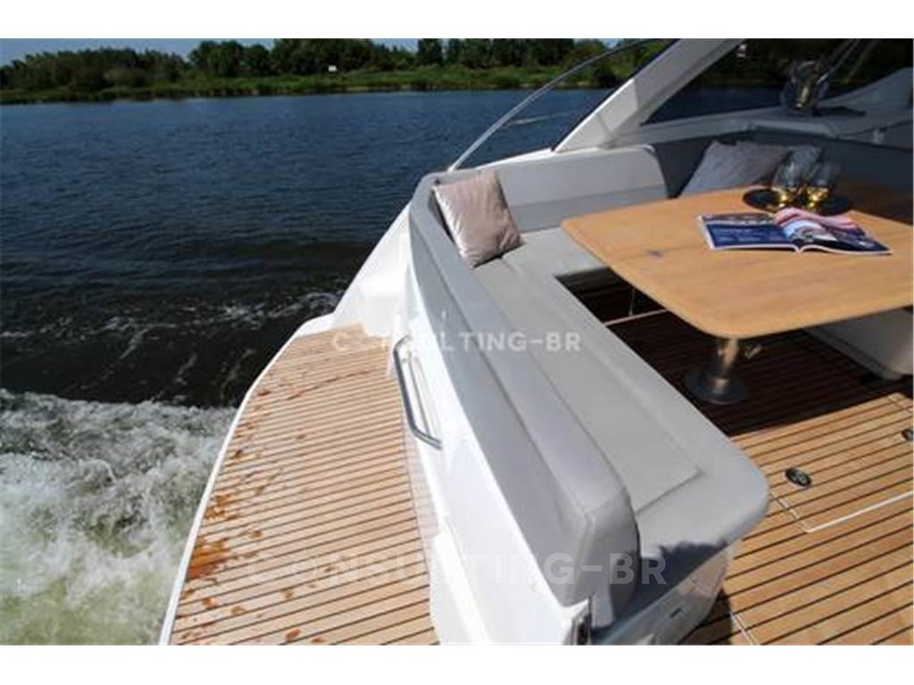 Caratteristiche principali: tecnologia Air Step® per prestazioni ed efficienza migliori Joystick (opzionale/in dotazione) + propulsori di prua e di poppa (secondo l'elenco delle dotazioni) Casco Centerline: ottima visibilità, tre persone sedute nella parte anteriore Cockpit con sedute a U e tavolo in legno massiccio (trasformabile in lettino prendisole)