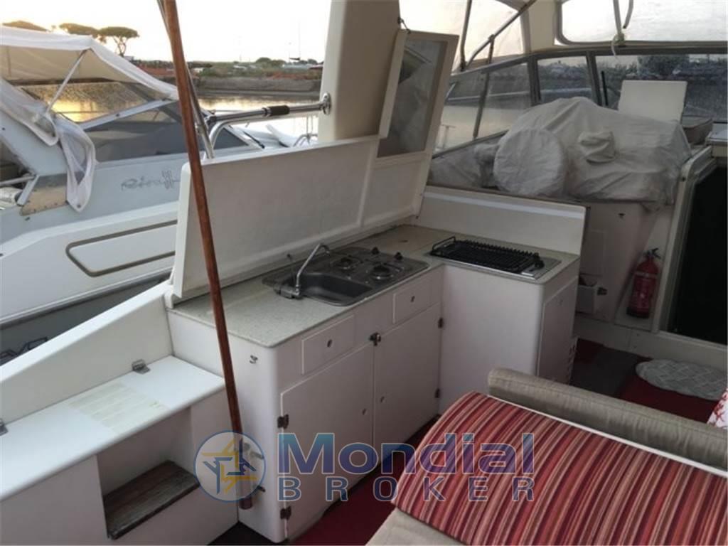 cucina esterna con grill elettrico e lavapiatti ; riscaldamento con camino elettrico ; friggitrice ; plancetta maggiorata ;8/2018 : pulizia scambiatori di calore; prese a mare nuove ; motore dx e invertitore da revisionare ; A CARICO ACQUIRENTE COMMISSIONE 5% + IVA