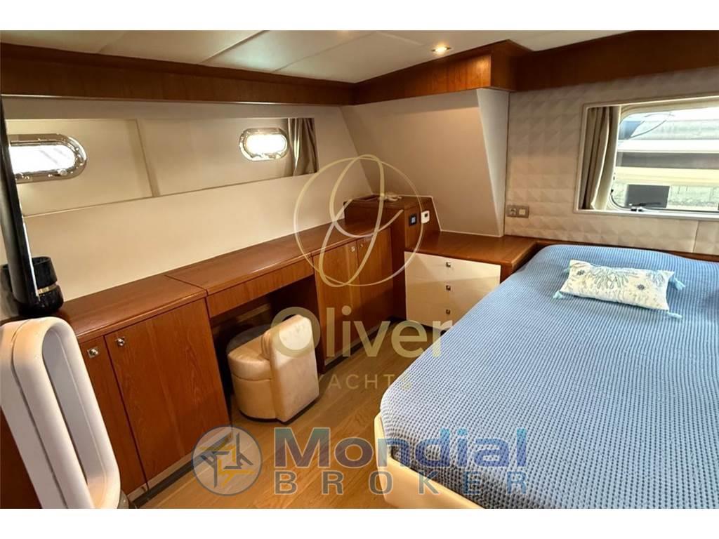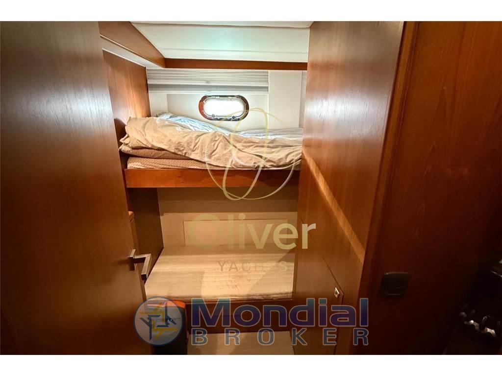 La disposizione interna è uno dei grandi punti di forza di questa unità. Grazie alle due scale separate, la barca garantisce una chiara divisione tra zona armatoriale e zona ospiti, un dettaglio raro su yacht di questa lunghezza. A poppa si trova la cabina armatoriale full-beam, ampia, luminosa, valorizzata da una grande finestratura e completata da una cabina bambini aggiuntiva, soluzione ideale per la famiglia o per un utilizzo flessibile.