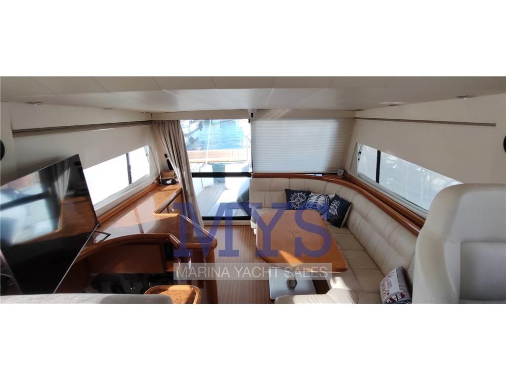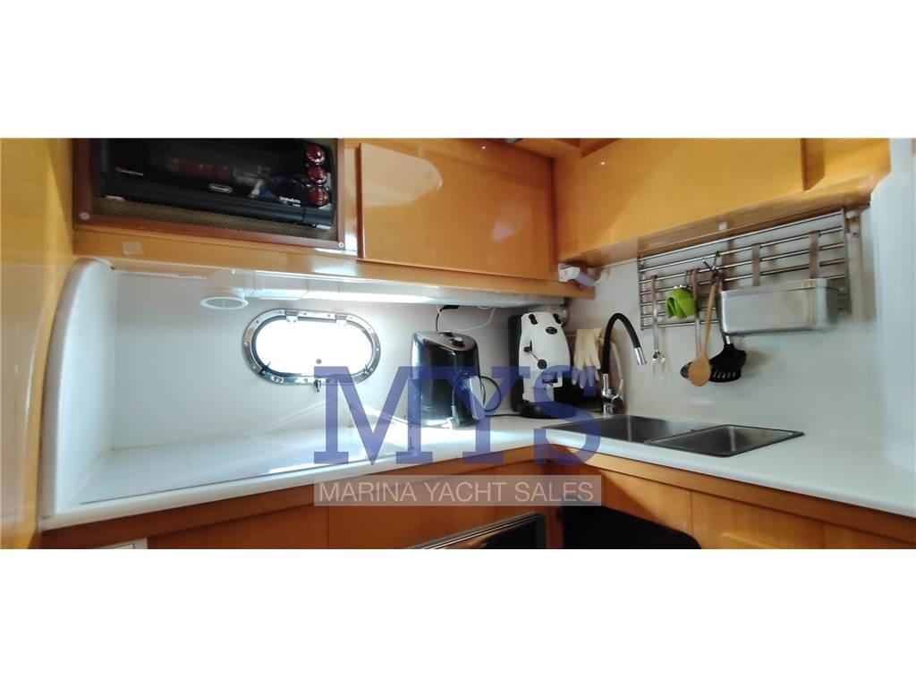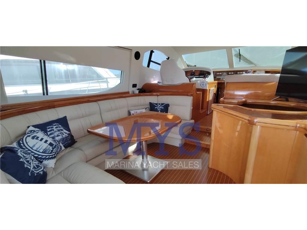 Aria condizionata, passerella Besenzoni, piattaforma bagno, teak in ottime condizioni, 3 frigoriferi interni, forno, piastra vetroceramica, lavatrice, TV, stereo, telecamera, cuscineria completa interna ed esterna, tendalini fly e pozzetto, telo copertura fly, impianto TV, digitale terrestre, luci di cortesia, doccia esterna.