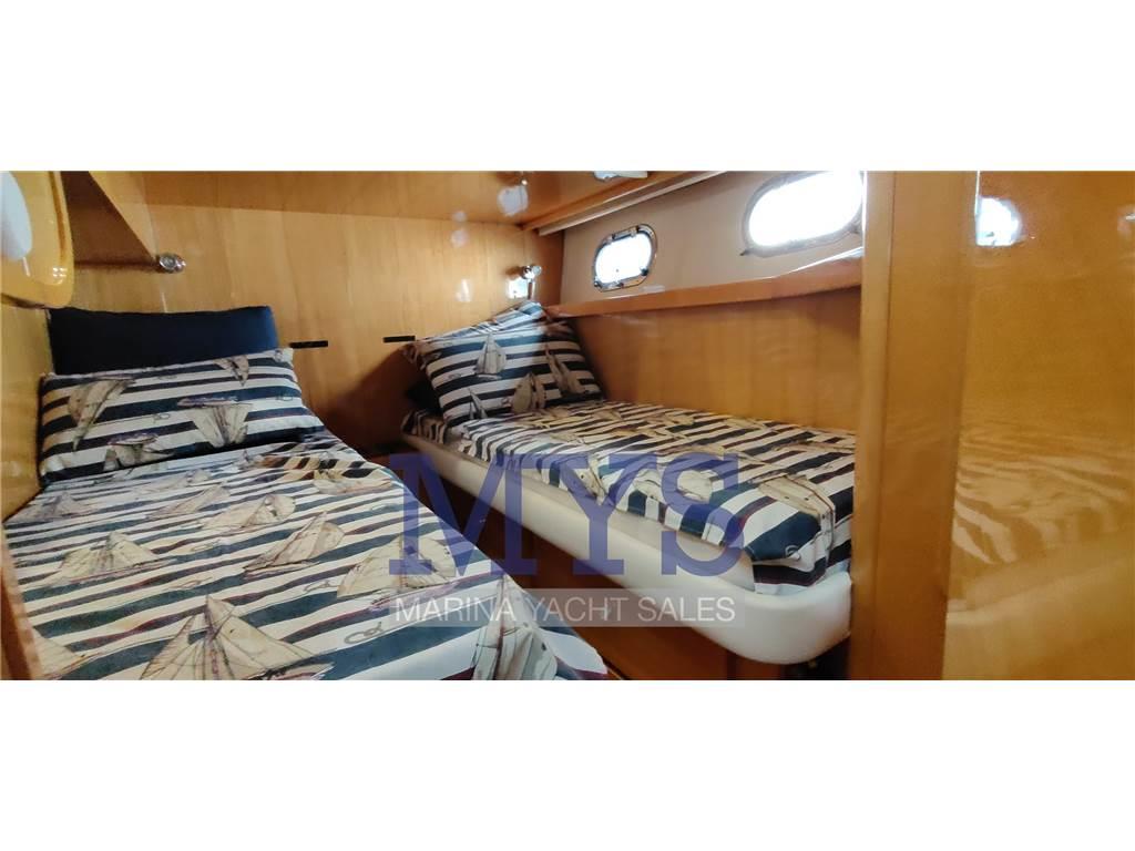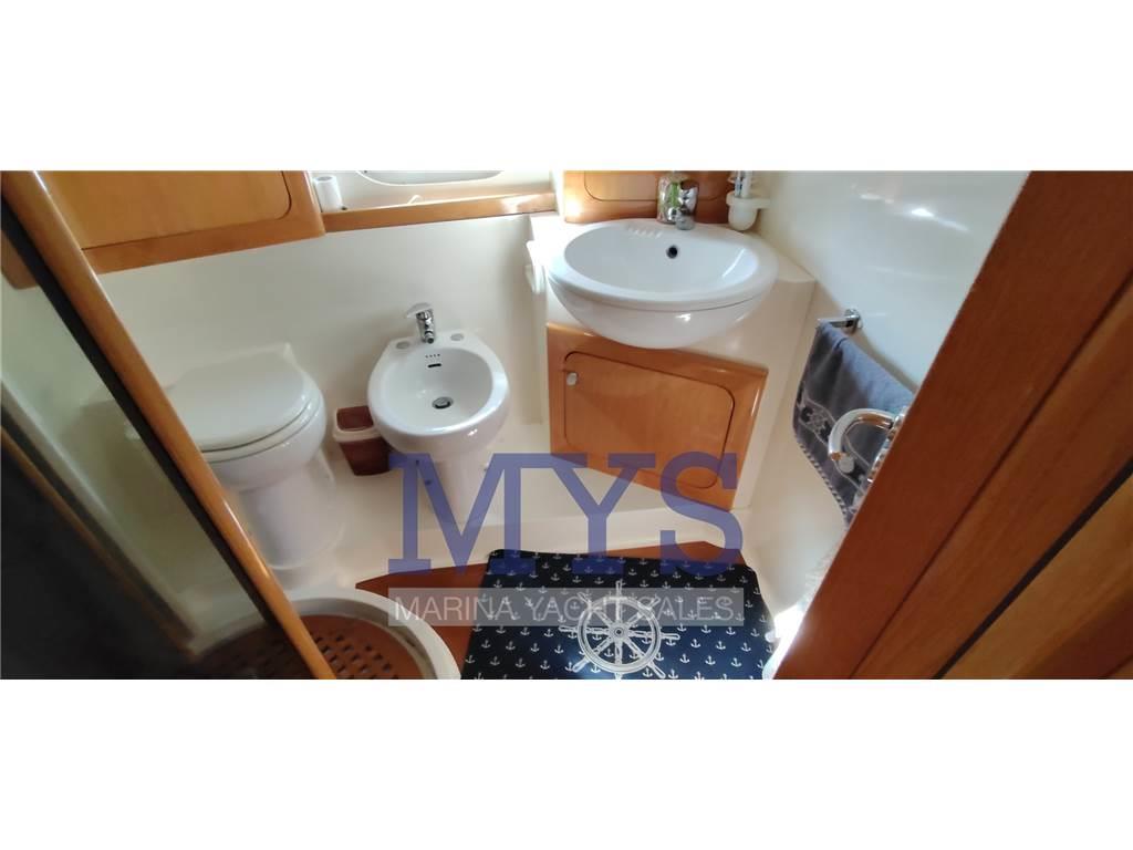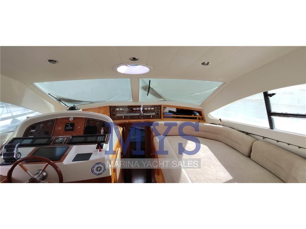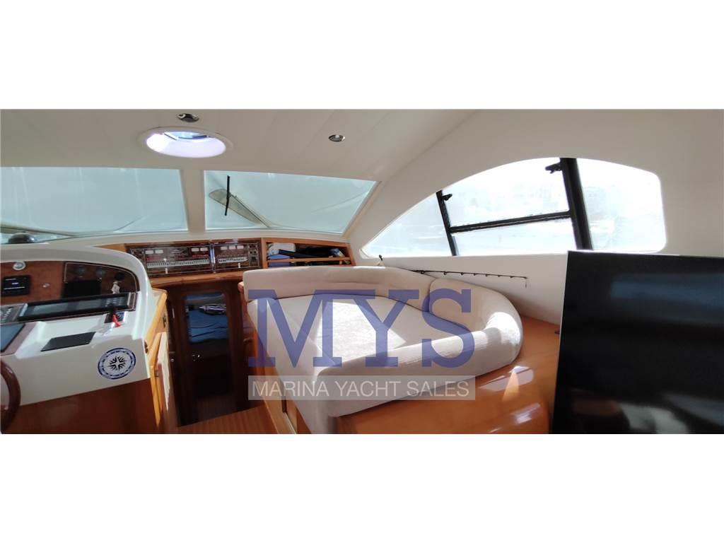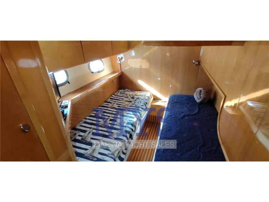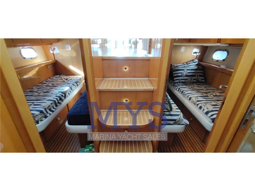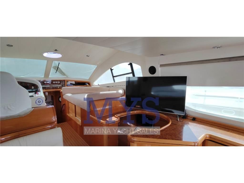 Doppia timoneria, GPS, Radar, Pilota automatico, VHF, ecoscandaglio, bow thruster proporzionale, flap elettrici, comandi motore elettronici, salpa ancore elettrico, contametri catena, strumentazione motori completa, pompe di sentina automatiche e manuali.