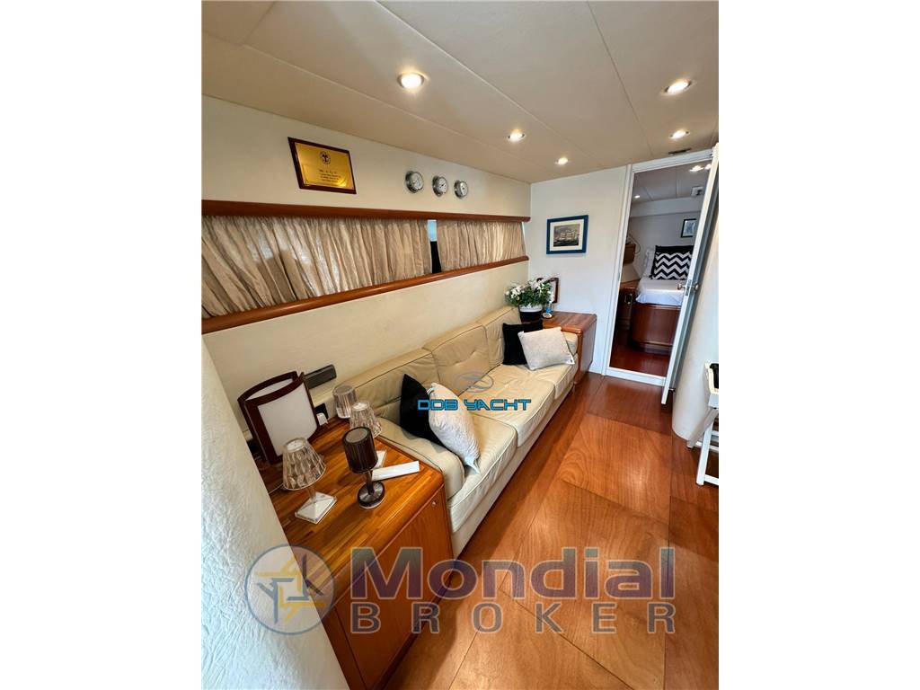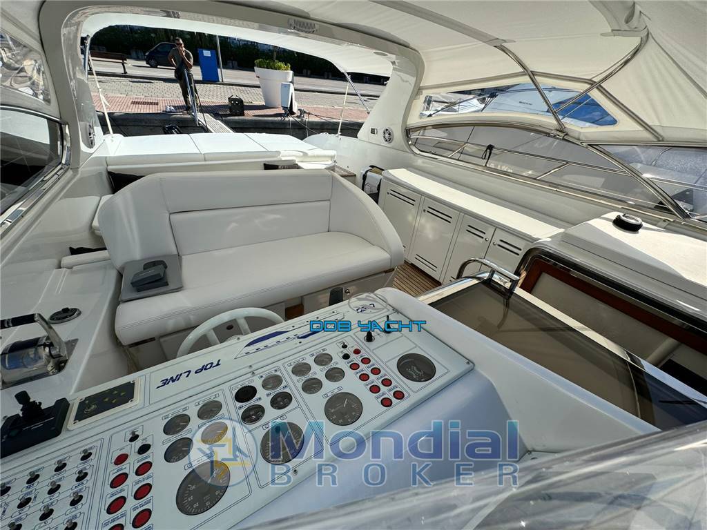 Strumentazione: strumenti motore analogici VDO, manette elettroniche, doppio gps GARMIN interfacciati con ECO, strumento RAYMARINE per indicazione della profondità, vhf RAYMARINE RAY 50, flaps con indicatori analogici, pilota automatico RAYMARINE ST 6001, bussola, luci via, tromba, stereo FUSION con comando remoto MS-WR600 in plancia, elica di prua VETUS, tergicristalli, angolo di barra, conta catena MZ ELECTRONIC.