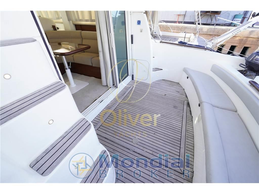 Il vero punto di forza è l’equilibrio perfetto tra comfort, autonomia e sicurezza. Gli spazi esterni sono eccellenti: pozzetto ampio e funzionale, grande prendisole a prua con cuscineria in biuone condizioni e un flybridge spazioso e trasformabile, completo di bimini. Tutto è pensato per vivere il mare in totale relax, sia in navigazione che in rada.