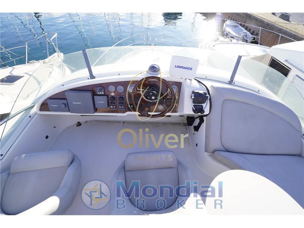 La motorizzazione è uno dei valori chiave di questa unità: 2 x Volvo Penta KAMD 300 da 275 HP, con motore sinistro completamente rifatto a nuovo nel 2025 (solo 50 ore) e motore destro con 1250 ore. A questo si aggiungono generatore nuovo 2025 (45 ore), impianto solare da 400W, elica di prua, flaps, passerella idraulica, verricello elettrico e strumentazione Raymarine completa (GPS, radar, autopilota, ecoscandaglio, VHF), il tutto duplicato sul fly.