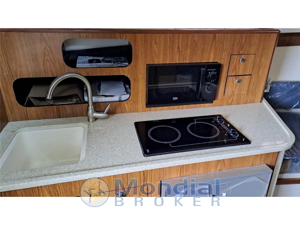 Ampio open space di prua, seconda cabina sotto baglio, cucina , attrezzata , WC elettrico con serbatoio acque nere in locale separato.