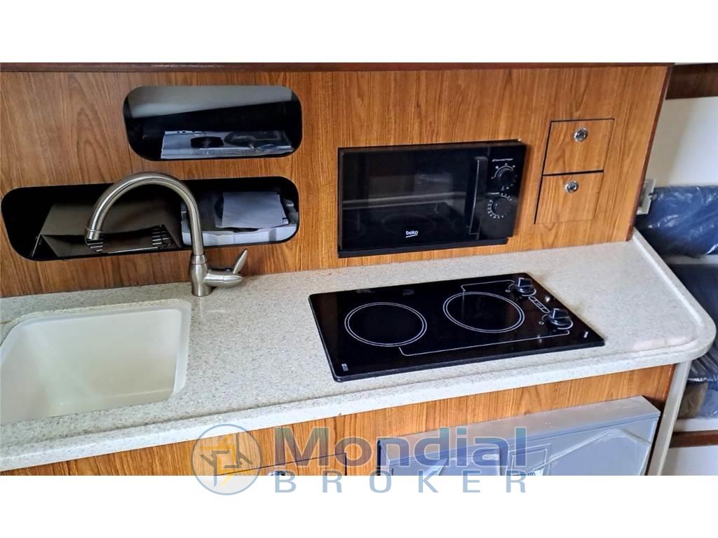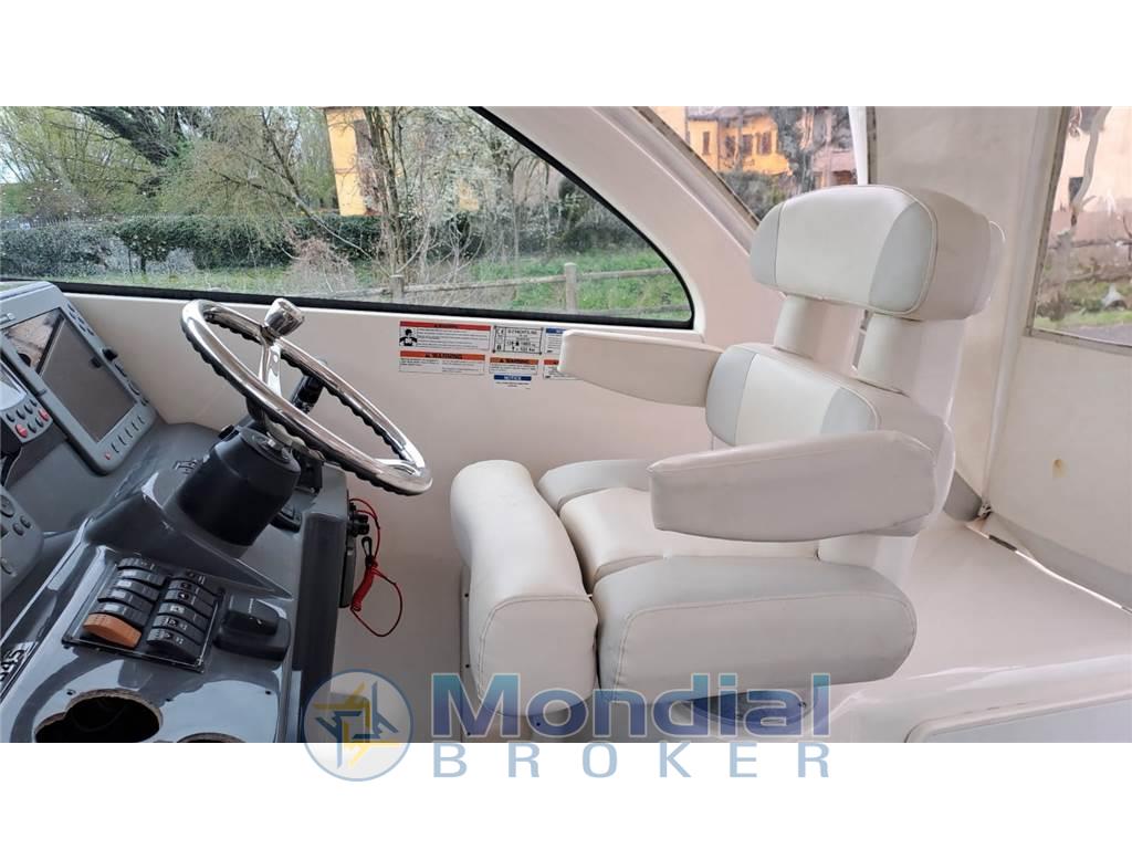 Generatore, Aria Condizionata, Radar, Elica di Prua, Flaps, Doppio Plotter GPS Raymarine, Eco, Vhf, Vasche varie per vivo e pescato, innumerevoli portacanne. Frigorifero interno ( Nuovo ) , Piastra elettrica, Microonde, Verricello elettrico, Carica batterie e presa banchina 220 V, Luci Sub,. Flexi Teak in pozzetto e Teak naturale in interno, Teli chiusura Hard Top . Fari di pozzetto
