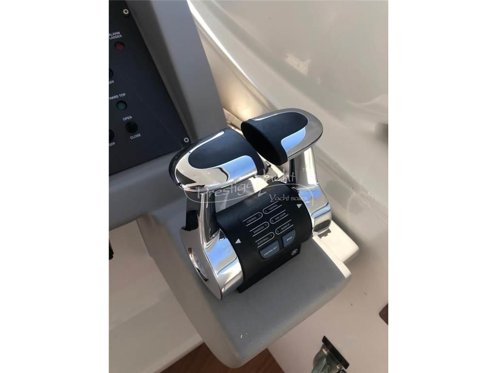Allarme motore, Autoclave, Autogonfiabile, Caricabatterie, Doccia esterna, Elica di prua, Faro orientabile, Flap idraulici, Hard Top, Impianto antincendio, Indicatori flaps, Luci di cortesia, Passerella (idraulica), Piattaforma, Pompa di sentina automatica, Pompa di sentina manuale, Porta di ingresso, Pozzetto in teak, Presa 220V banchina, Presa acqua banchina, Rollbar, Salpa ancora elettrico, Scaletta da bagno, Tavolo in pozzetto, Tender (+FB), Winch tonneggio di poppa congelatore, Cucina, Frigorifero esterno, Frigorifero interno, Ghiacciaia, Lavastoviglie, Microonde, Piastra in vetroceramica Boiler, Cassaforte, Dissalatore, Impianto acque nere, Inverter, Prese interne 12V, Prese interne 220V, 3 Wc marino elettrico Altoparlanti, Antenna satellitare, Decoder satellitare, Digitale terrestre, Impianto TV, Stereo, TV Angolo barra, Bussola, Comando motori elettronico, Contamiglia, DSC vhf, Ecoscandaglio, GPS, Pilota automatico, Plotter, Radio VHF Copripozzetto, Cuscineria di poppa, Cuscineria di prua, Teli copri finestra, Telo copri consolle, Tendalino