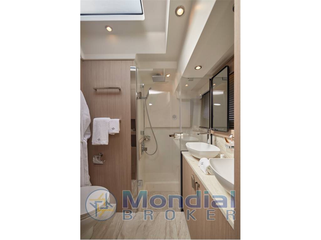 L’intera zona giorno è inondata di luce naturale. Un’ampia e alta porta laterale scorrevole in vetro consente di accedere al ponte e di godere di un panorama eccezionale. La visibilità si estende a poppa dello yacht, attraverso le finestre della cucina, e a prua, attraverso il parabrezza. Questa vista a 360º sul mare, quasi ininterrotta, garantisce un’esperienza immersiva assoluta. Dal ponte principale del PRESTIGE F-Line 5.7, un accesso privato permette ai suoi armatori di accedere alla propria cabina in modo semplice e discreto. Sapientemente posizionata, la suite armatoriale di prua garantisce una perfetta tranquillità, sia in mare, lontano dalla sala macchine, sia all’ormeggio, lontano dalle attività in banchina.Molto generoso lo spazio abitativo con pavimenti a filo e altezza in cabina davvero importante con un’illuminazione naturale attraverso le finestre dello scafo. Le linee curve conferiscono a questa suite armatoriale un’atmosfera raffinata con materiali pregiati, come il legno e i tessuti in tonalità naturali che contribuiscono ad aumentare lo charme di questo PRESTIGE F-Line 5.7. La cabina vanta inoltre un letto king size, un bagno interno con doccia separata e doppio lavabo, un vanity e un’ampia cabina armadio.Gli ospiti hanno a loro disposizione una magnifica cabina VIP con lo stesso design raffinato e anche qui, grazie alle generose finestrature, si gode di una vista sul mare magnifica. Il comodo letto queen size, posto in diagonale, contribuisce a dare una sensazione di spaziosità e facilita i movimenti. La terza cabina dispone di due cuccette singole e di un bagno separato, inoltre in caso di necessità lo stivaggio di poppa può essere trasformato in una cabina attrezzata per skipper con accesso separato.