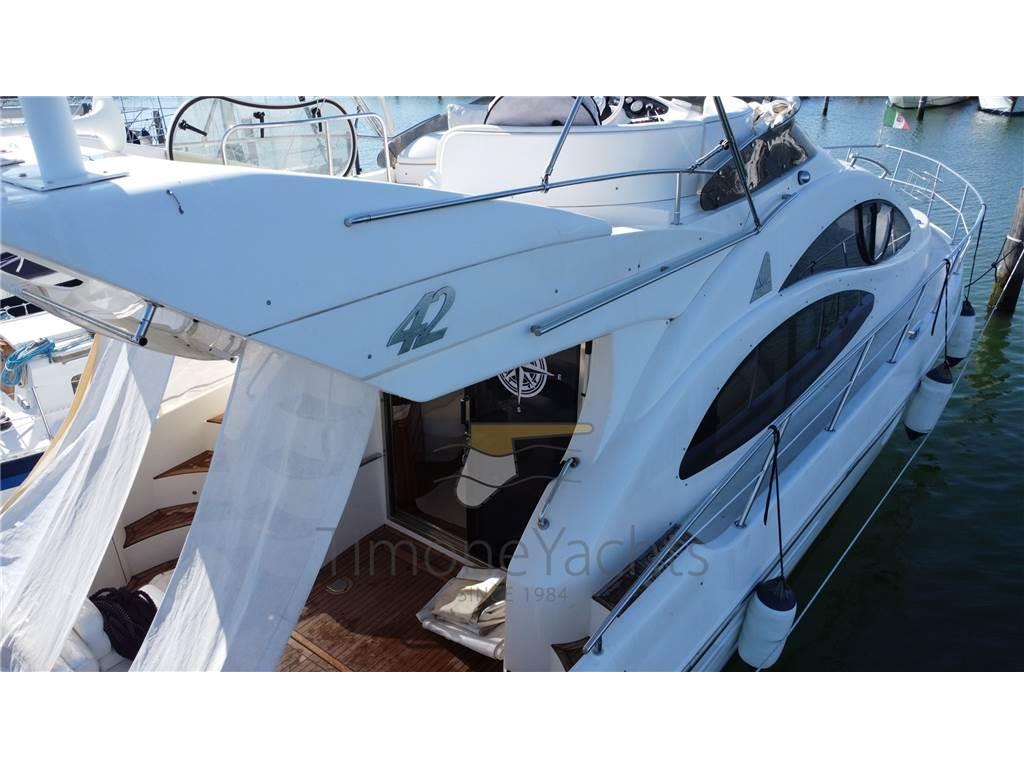 Elica di prua - bow thruster, Flap idraulici (con indicatori), Luci di cortesia, Passerella (idraulica), Pozzetto Teak (e plancetta di poppa), Tavolo Salone Abbattibile.