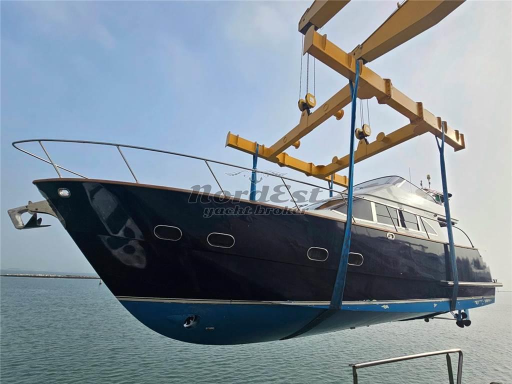 Imbarcazione dislocante, scafo in acciaio, Sovrastruttura in alluminio, Coperta e interni in teak. Ottima navigazione con consumi ridotti. Designer americano Bruce Roberts. Categoria di progettazione A