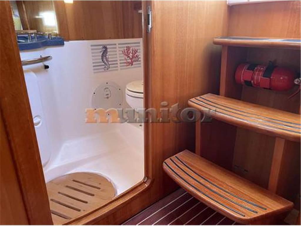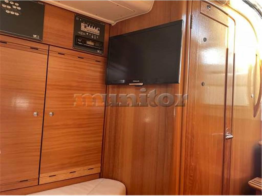VHF, Ecoscandaglio, Doccia in pozzetto, Verricello elettrico, Serbatoio acque grigie, Plotter GPS, Tenda bimini, Caricabatterie, Cuscini di coperta, Elica di prua, TV LCD, Impianto audio, Gommone, Motore fuoribordo, Parabordi, Bussola, Piattaforma da bagno, Scaletta da bagno, Copertura invernale, Pannelli solari, Batteria di servizio, Batteria motore, Teak in pozzetto, Teak a poppa