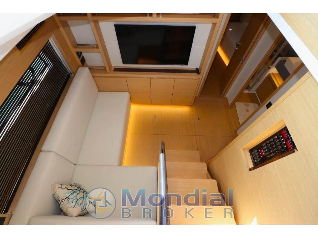 Acqua Calda, Clima reversibile, Collegamento internet satellitare (Antenna SAT TV KVH TV5,completa di decoder), Controllo Domotica, Dissalatore (OSMOSEA 100 L/H), Indicatore del Serbatoio dell’Acqua, Inverter (2500 W), Pavimento interno in legno (TEAK TRATTATO), Prese interne 12v, Prese interne 220v, 2 Serbatoio Acque Nere, 2 WC marino elettrico.