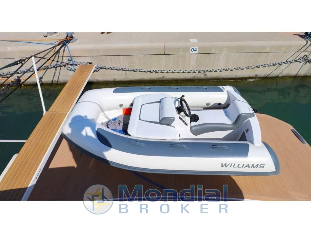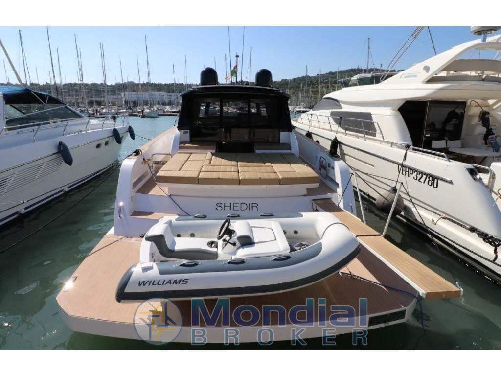 Allarme motore, Allarme sentina, Alternatore, Ancora (TREFOIL 25 KG, 50 M CATENA 10MM con videocamera), Auto Dynamic Trim Interceptor, 6 Bitte Abbattibili, Camminamenti laterali in teak (FLEXITEAK), Caricabatterie (80 HA), Cavo corrente di banchina, Doccia esterna, Hard top, Impianto antincendio, 8 Parabordi, Passerella (IDRAULICA), Piattaforma, 3 Pompa di sentina automatica, Pompa di sentina manuale, Ponte in teak (FLEXITEAK), Pozzetto Teak (FLEXITEAK), Presa 220V banchina, Salpa Ancore Elettrico, Scaletta da bagno, Selle per Tender (Originali Williams), Tavolo pozzetto, Tender (Williams 285).