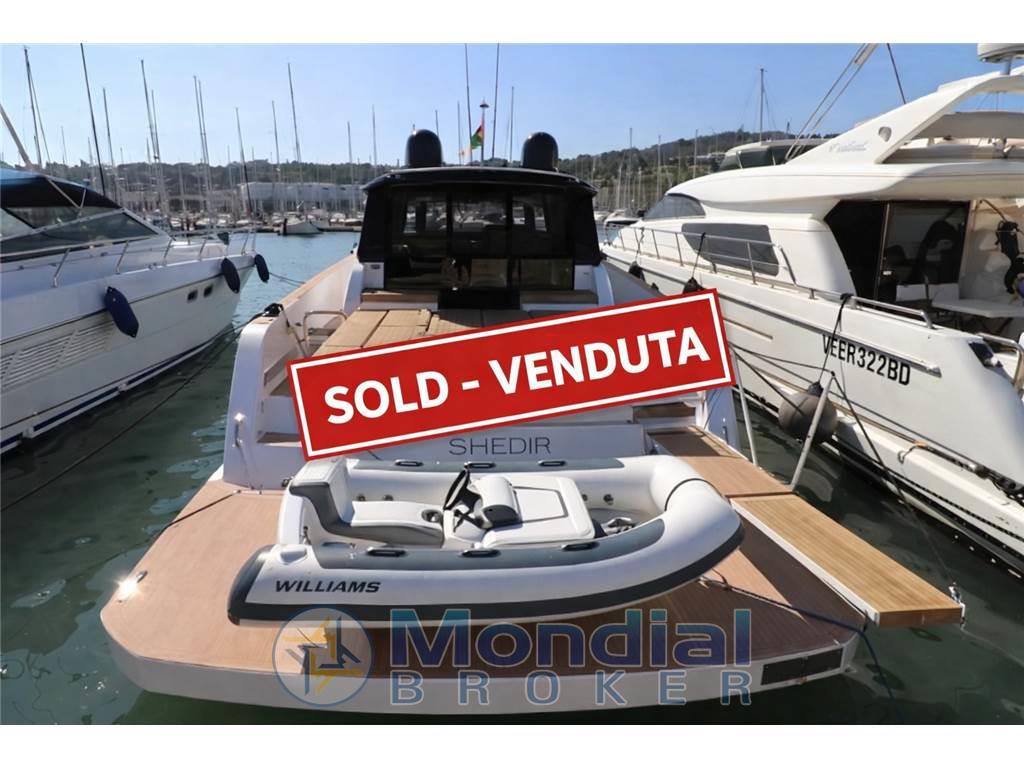 Allarme motore, Allarme sentina, Alternatore, Ancora (TREFOIL 25 KG, 50 M CATENA 10MM con videocamera), Auto Dynamic Trim Interceptor, 6 Bitte Abbattibili, Camminamenti laterali in teak (FLEXITEAK), Caricabatterie (80 HA), Cavo corrente di banchina, Doccia esterna, Hard top, Impianto antincendio, 8 Parabordi, Passerella (IDRAULICA), Piattaforma, 3 Pompa di sentina automatica, Pompa di sentina manuale, Ponte in teak (FLEXITEAK), Pozzetto Teak (FLEXITEAK), Presa 220V banchina, Salpa Ancore Elettrico, Scaletta da bagno, Selle per Tender (Originali Williams), Tavolo pozzetto, Tender (Williams 280).