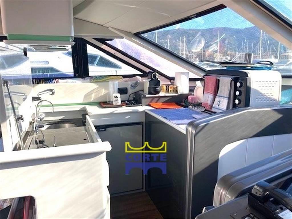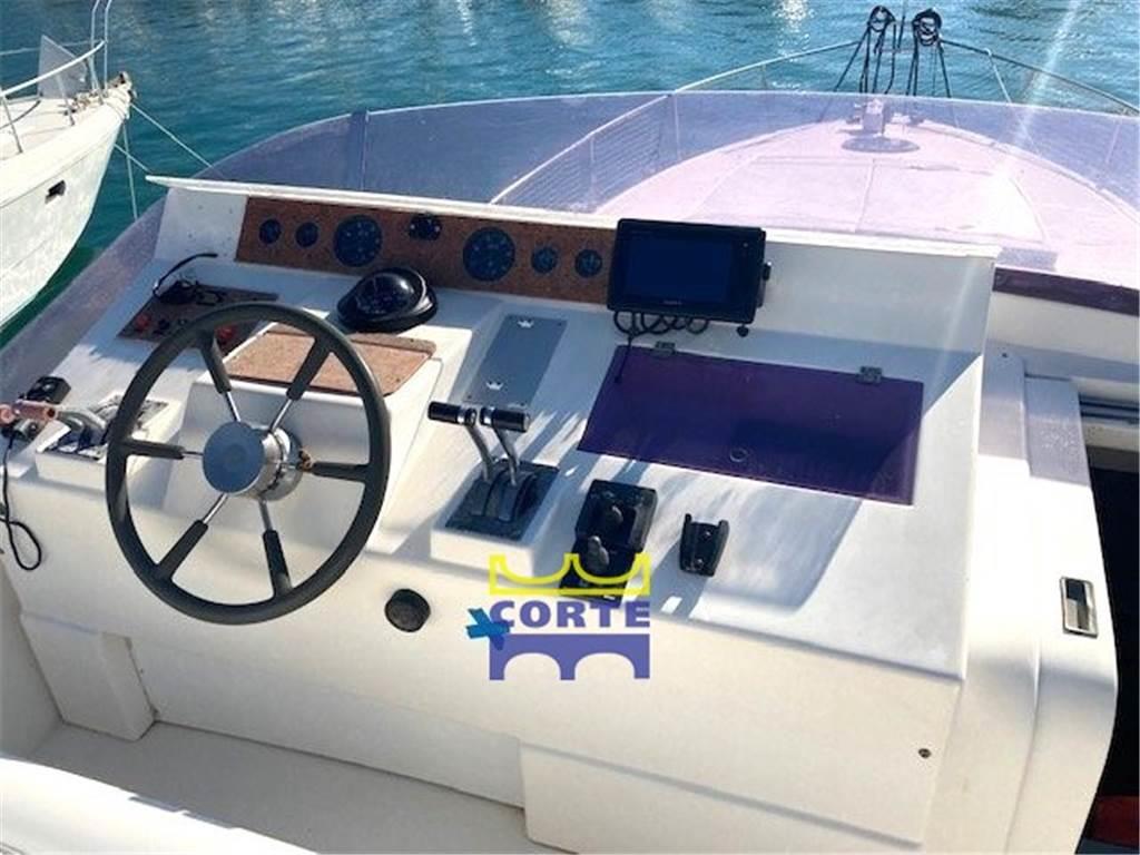 Fly con sedute per 6 persone trasformabiliin chaise longue, consoledi guida completa e roll-bar con 2 antenne VHF , antenna satellitare e digitale terrestre Navisystem.