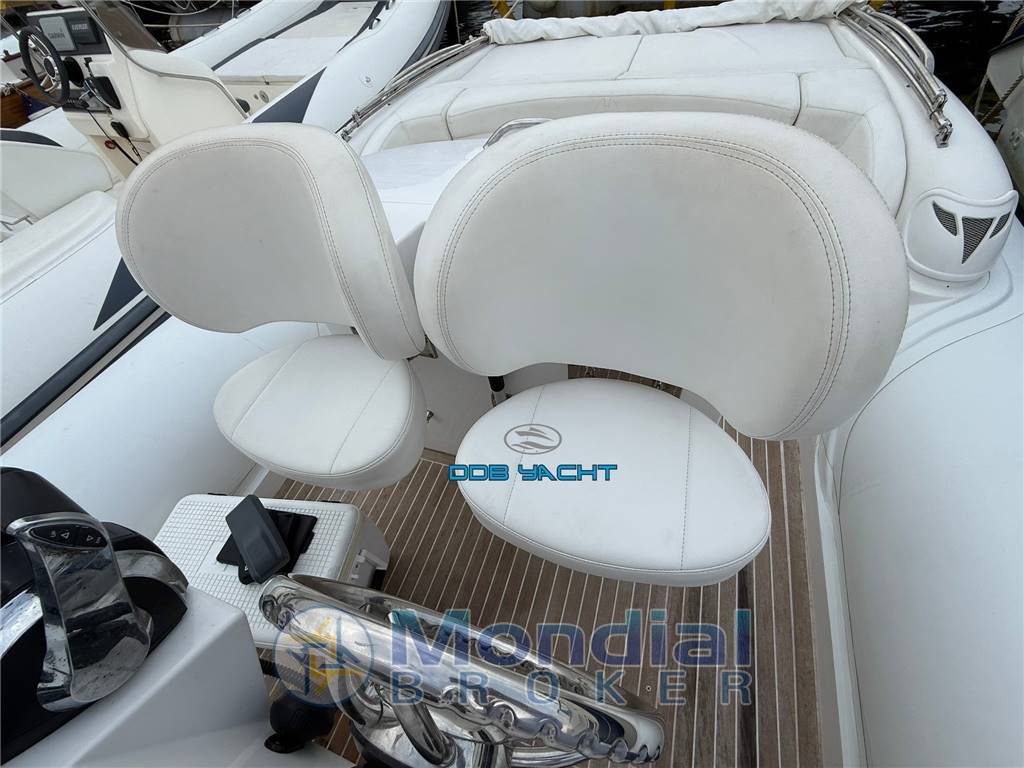 Dotazione armamento e accessori: dotazioni di bordo, tendalino parasole con arcata in acciaio, pedana di poppa rivestita in TEAK con scaletta di risalita, telo copri prendisole di poppa e copri consolle, alza vano motore elettrico.