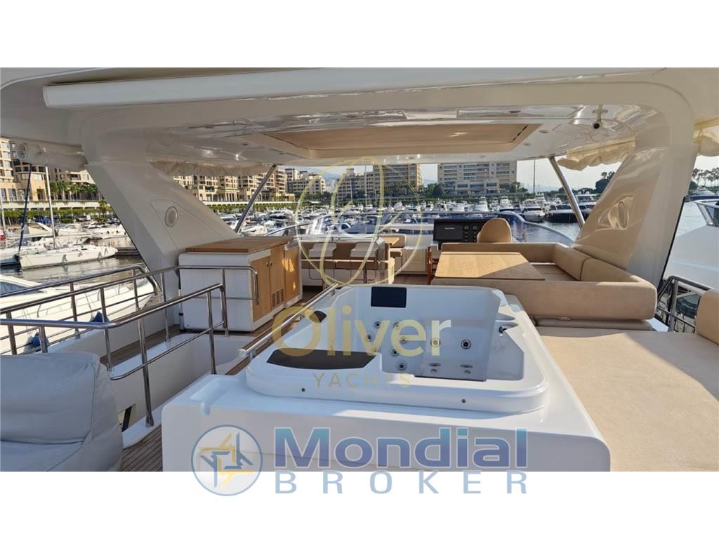 Per migliorare ulteriormente la manovrabilità, l'Azimut 80 è dotato di eliche di prua e di poppa idrauliche prodotte da Side Power, che facilitano le manovre in porto. Il flybridge è uno dei punti di forza dell'imbarcazione: dotato di un hardtop con tetto elettrico apribile, ospita una spaziosa zona prendisole e una vasca idromassaggio con controller aggiornato nel 2023, ideale per godersi momenti di relax all'aperto. Inoltre, il flybridge dispone di un tendalino elettrico con sensore del vento, che protegge gli ospiti dal sole e dal vento, garantendo comfort in ogni condizione meteorologica.