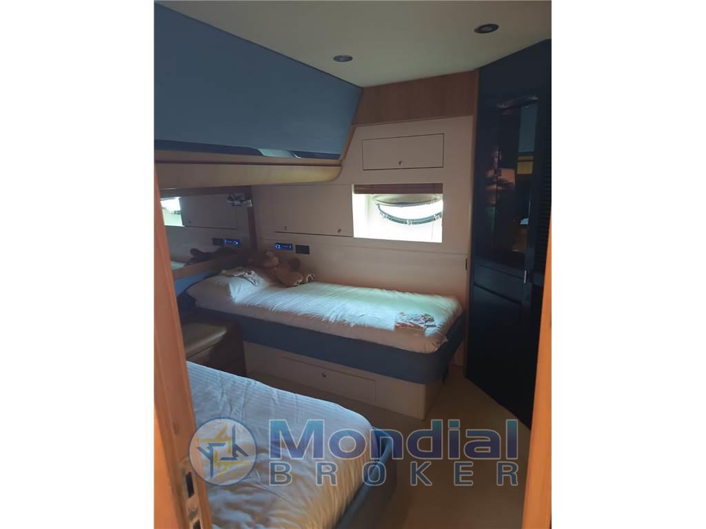 Ancora, Autoclave, Autogonfiabile, Batterie, Caricabatterie, Doccia esterna, Elica di prua, Flap idraulici, Garage per tender, Impianto antincendio, Lavaggio catena, Pompa di sentina elettrica, Presa 220V banchina, Presa acqua banchina, Salpa ancora elettrico, Tender, Winch elettrico congelatore, Cucina, Frigorifero esterno, Frigorifero interno, ICE Maker, Piastra in vetroceramica Dotazioni di sicurezza oltre 50 miglia Aria condizionata, Clima reversibile, Prese interne 12V, Prese interne 220V, Riscaldamento, Wc marino elettrico Altoparlanti, Radio AM/FM, TV Angolo barra, Comando motori elettronico, GPS, Pilota automatico, Plotter con antenna GPS, Radio VHF Bimini, Copripozzetto, Cuscineria completa, Teli chiusura T-Top, Tendalino