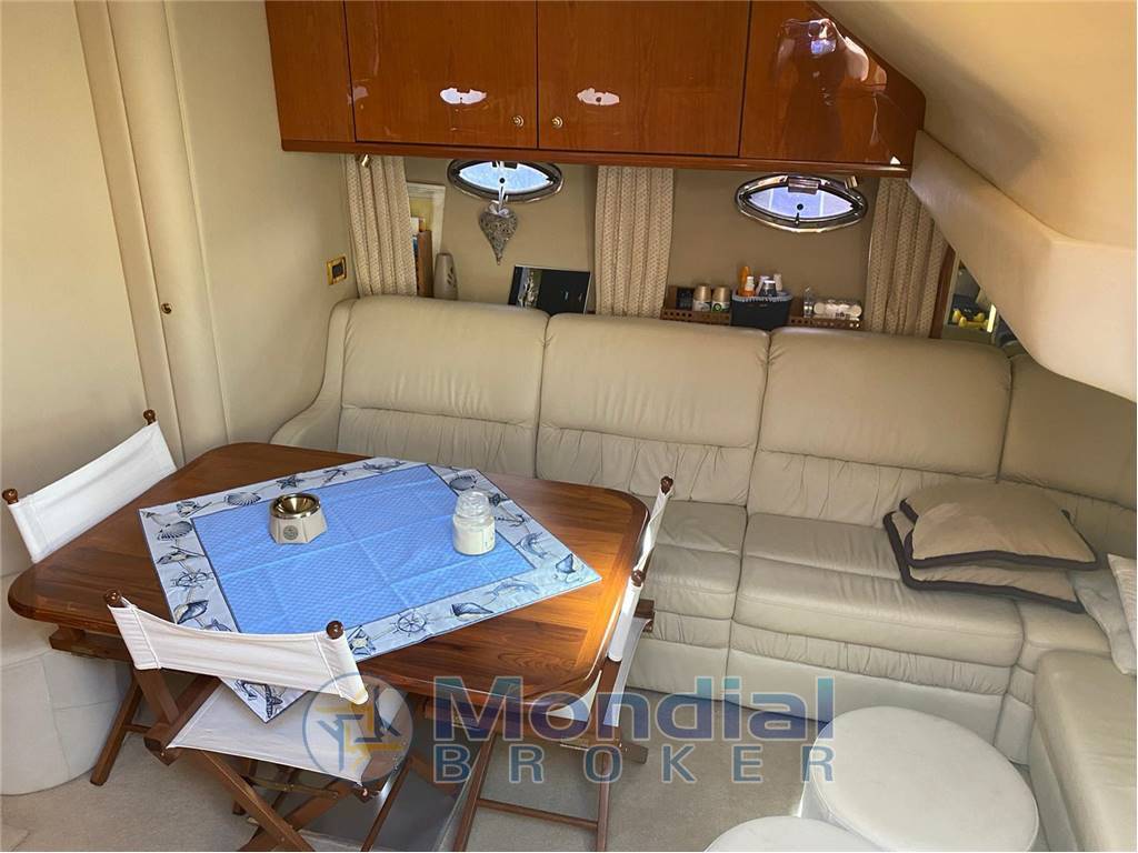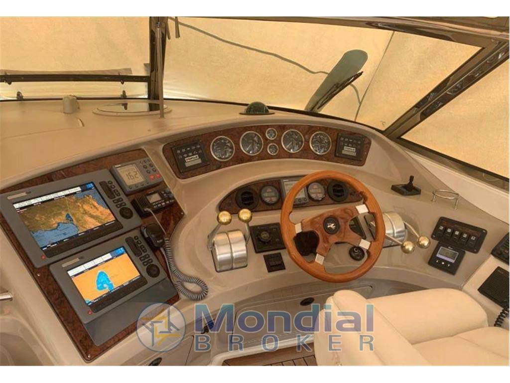 Allestimento tecnico di coperta: Doccia esterna, faro orientale, flaps regolabili, plancetta affondabile, teak in pozzetto, generatore kw si, verricello elettrico, passerella idraulica, elica di prua, angolo di barra, conta catena, impianto di banchina.