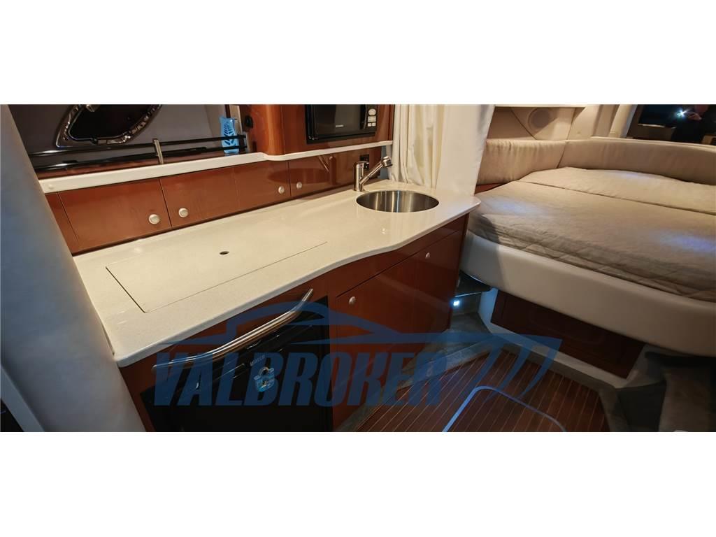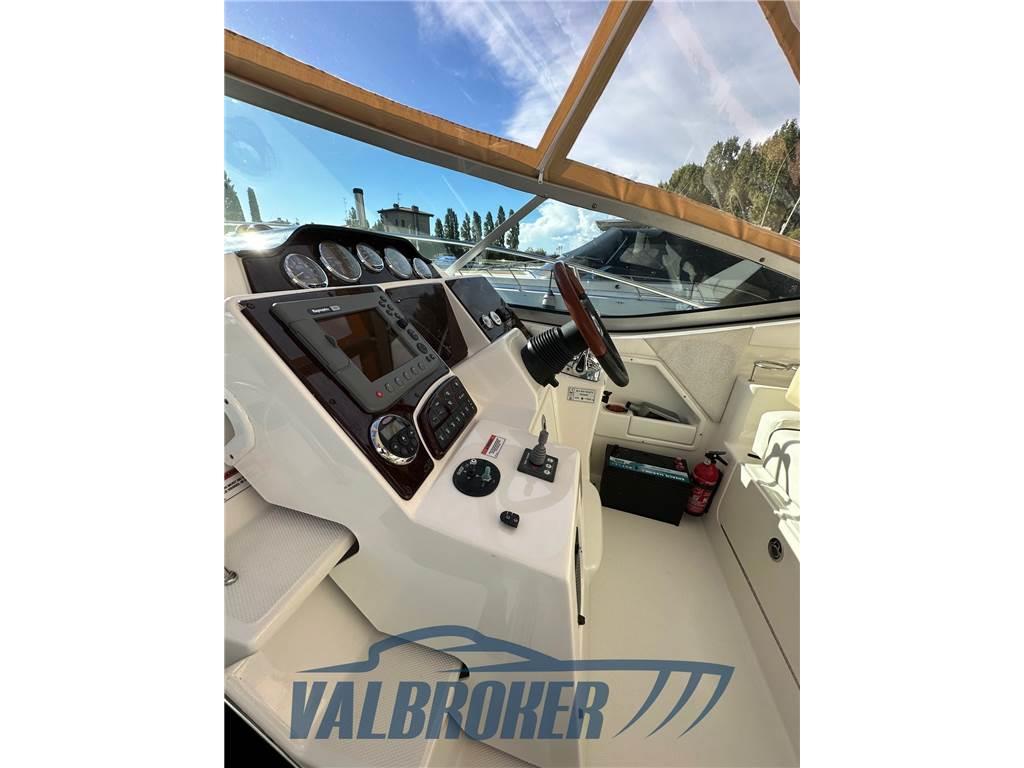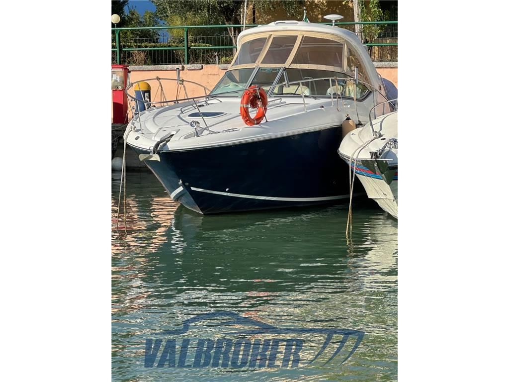 Grande qualità costruttiva dell'importante cantiere americano Sea Ray. Scafo solido, robusto e ben strutturato per qualsiasi condizione meteo. Imbarcazione in ottimo stato, ha navigato sempre e solo in acqua dolce sul lago di Garda. Motorizzata 2x325HP V8 Mercruiser 6.2 con solo 250 ore di moto!! Model year 2008. Rimessata al coperto tutti gli inverni. Elica di prua, aria condizionata caldo/freddo. Comodo vano apribile con divanetto su plancetta di poppa. Cuscineria bicolor originale Sea Ray in ottimo stato di conservazione.