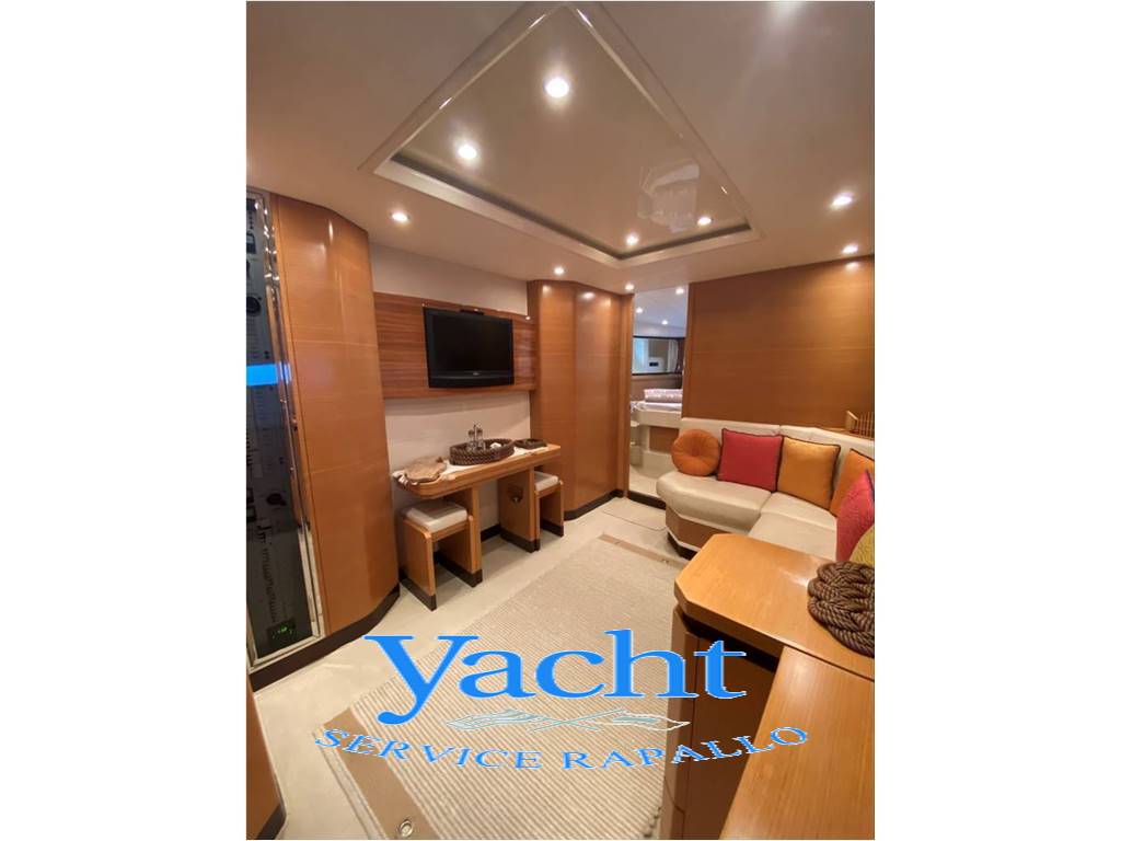 n. 4 cabine di cui n. 1 cabina armatoriale con letto doppio e bagno ensuite a centro barca - n. 1 cabina vip con letto doppio e bagno ensuite a prua - n. 1 cabina ospiti con due letti singoli a poppa con bagno ensuite - n. 1 cabina equipaggio a poppa con servizio riservato - ampia dinette con divano a "L" e cucina attrezzata a scomparsa – in dinette n. 1 frigorifero, n. 1 cantina dei vini ( 2024) - hard top - interni in rovere chiaro- pozzetto e piattaforma di poppa in teak - zona prendisole a poppa e prua.