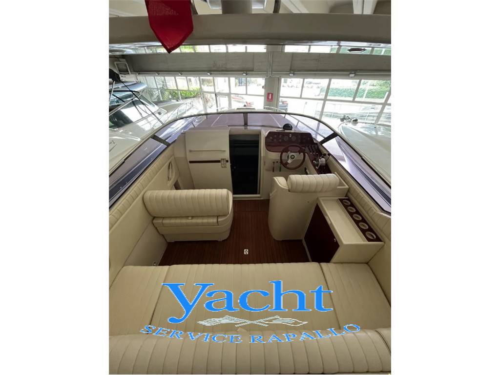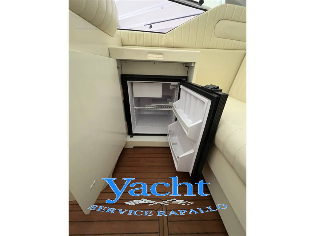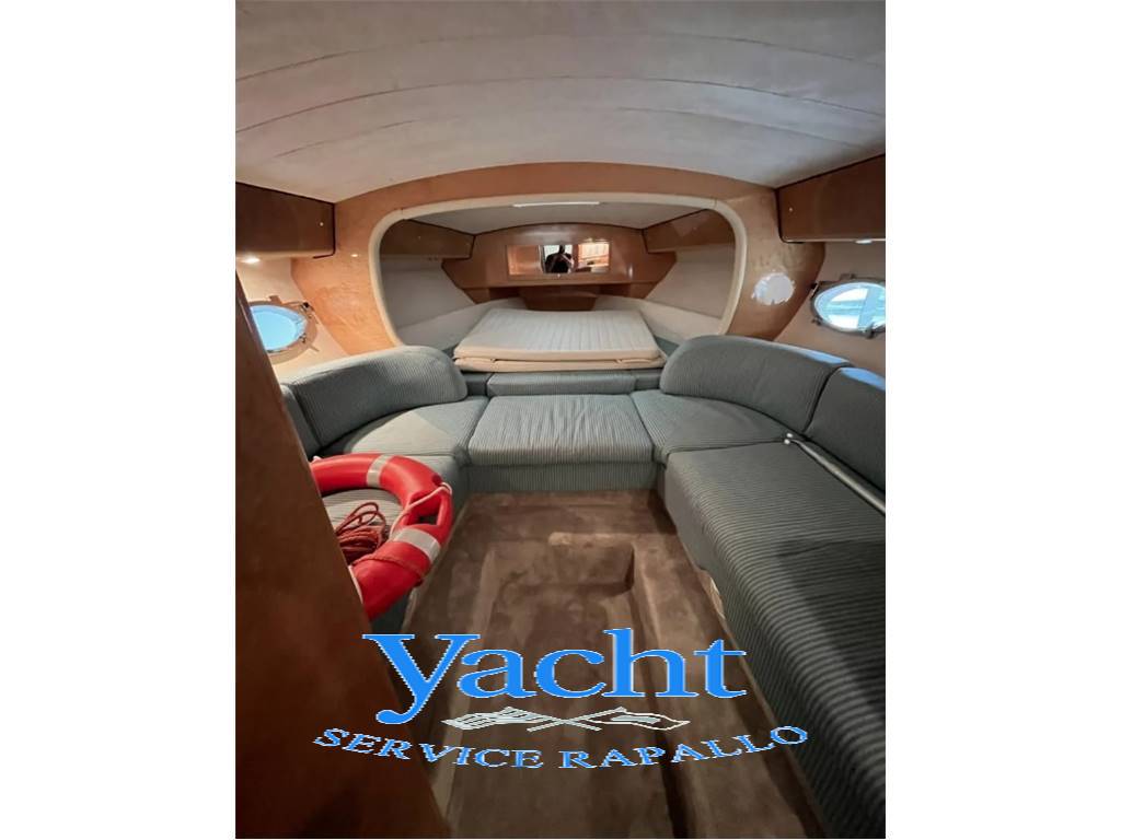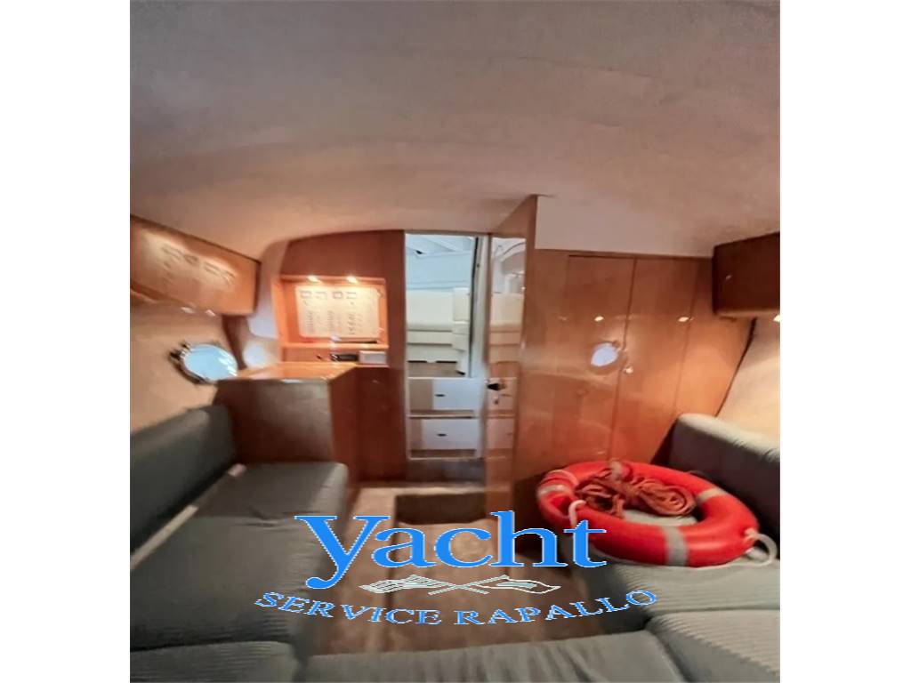 cabina armatoriale a V di prua – angolo cucina – n.1 bagno separato – cuscineria prendisole di prua e poppa – tavolo pozzetto con porta bicchieri – luci cortesia pozzetto e gradini – n. 2 frigoriferi – mobile pozzetto - plancetta di poppa con carabottini in teak - sedile pilota.